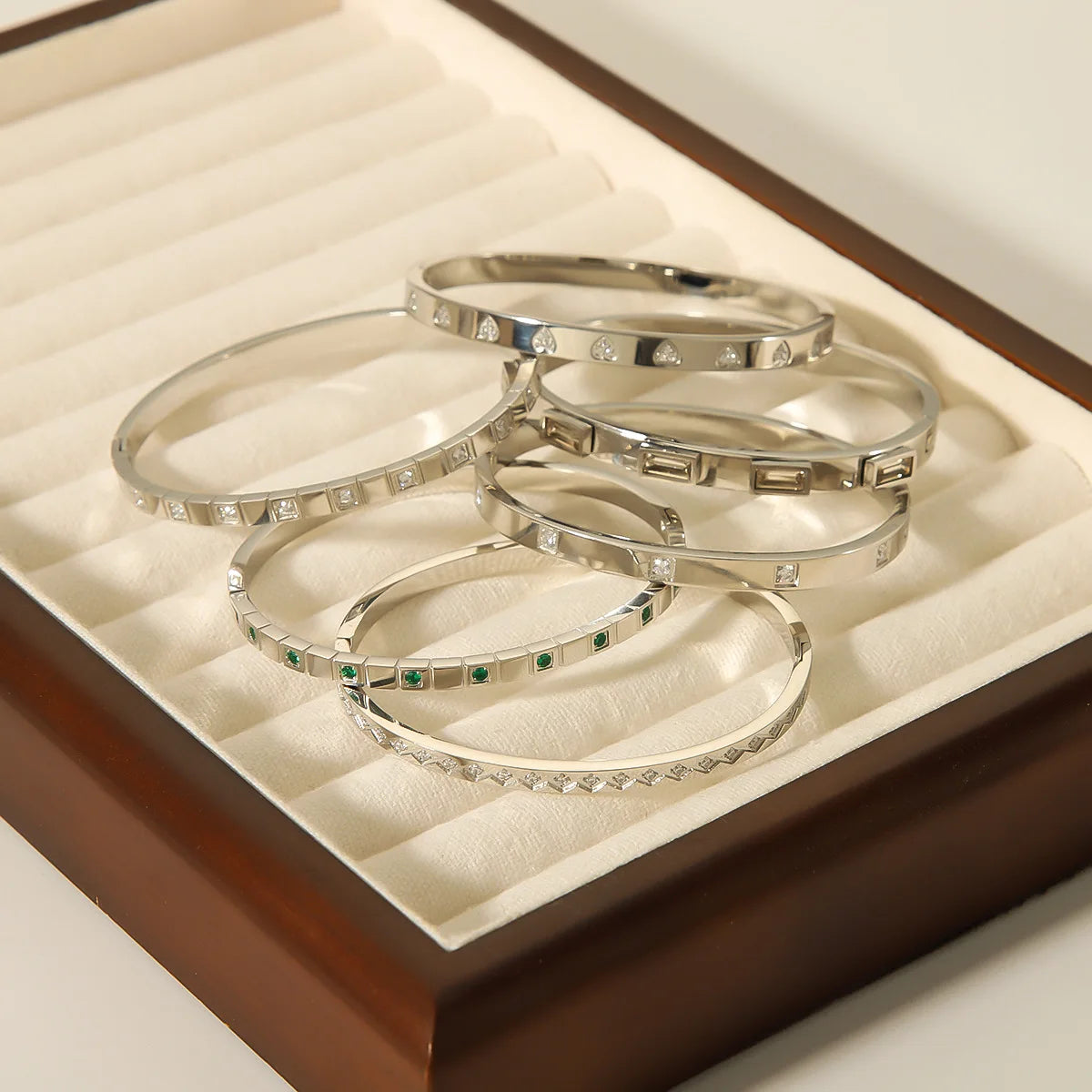 Elegant Platinum Plated Stainless Steel Handmade Bracelet With Polished Zirconia for Special Occasions