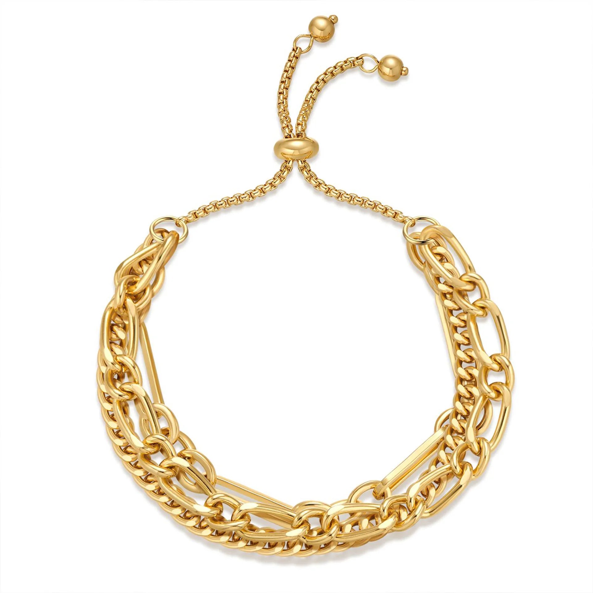 Elegant Minimalist Stainless Steel Adjustable Chain Bracelet with Hypoallergenic 18K Gold-Plated Link Design for Everyday Wear
