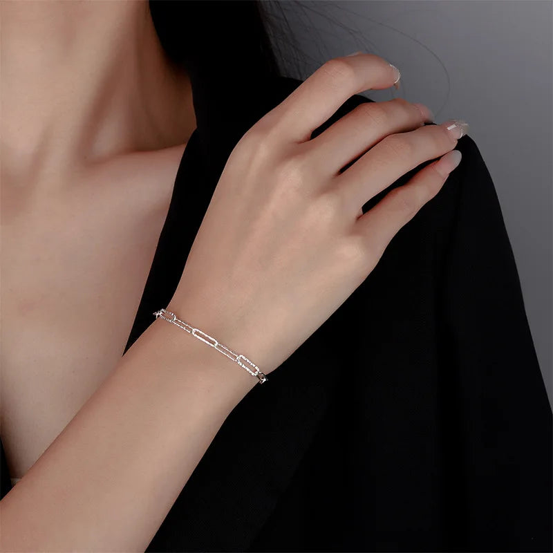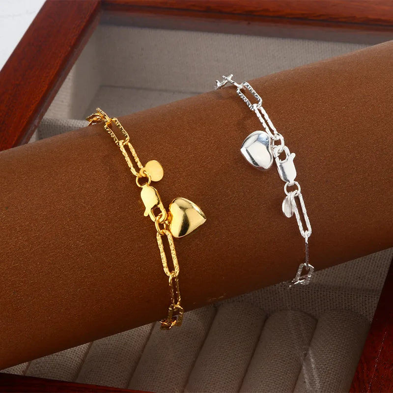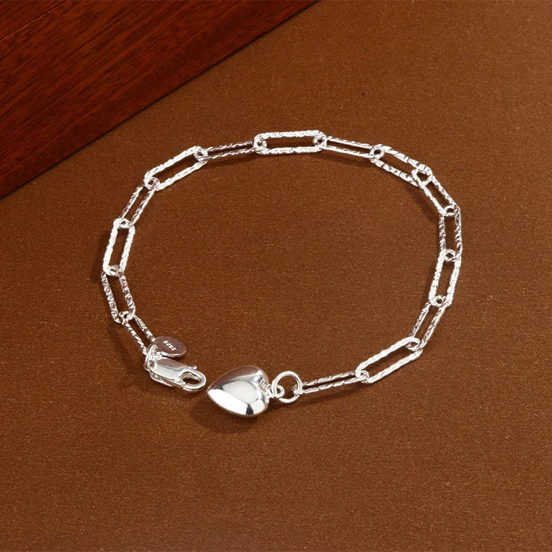 Elegant 925 Silver Round Chain Bracelet Trendy Heart Shape Luxurious Texture for Daily and Casual Occasions