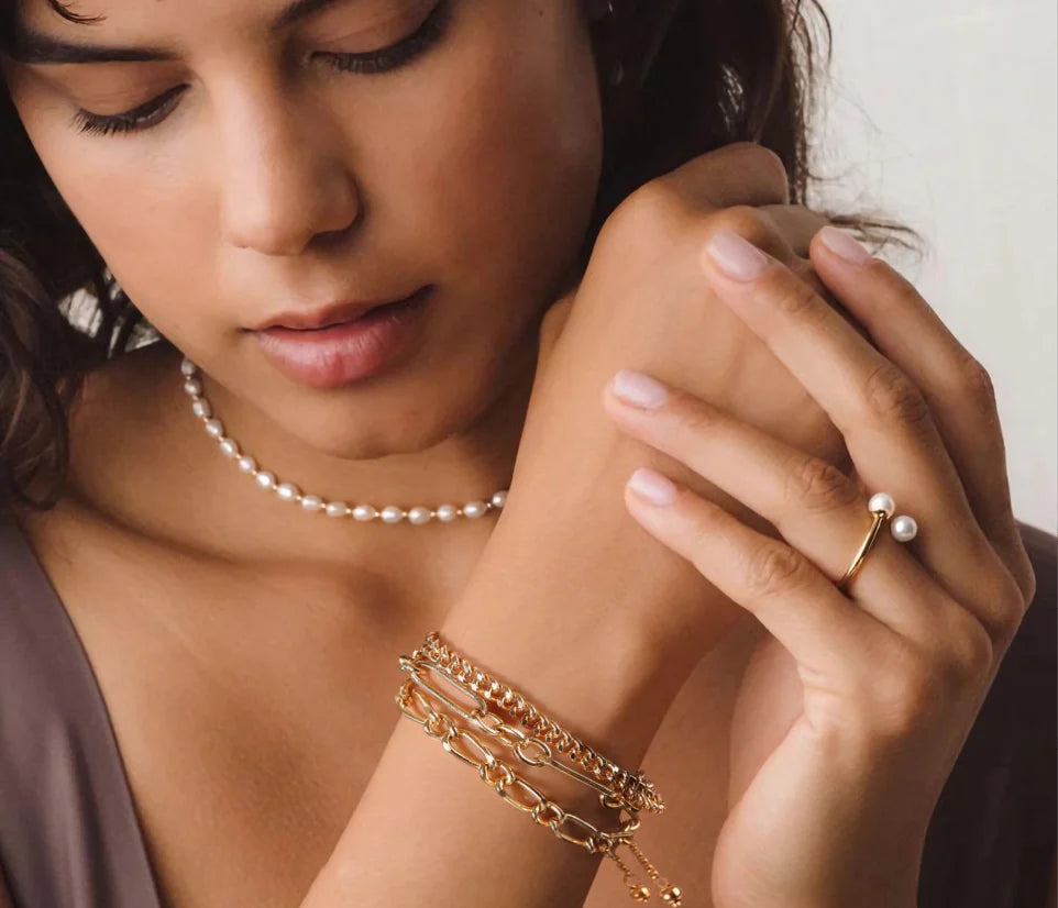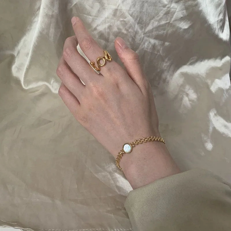 New Double-Layer Round Pendant Bracelet Waterproof Simple Irregular Gold Plated Stainless Steel Chain Bracelet