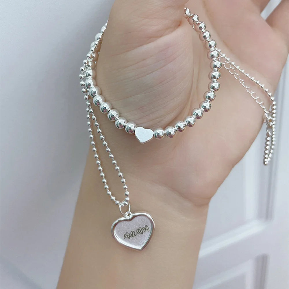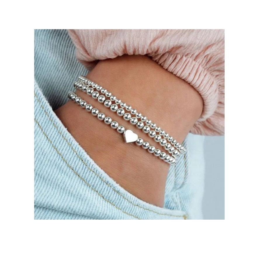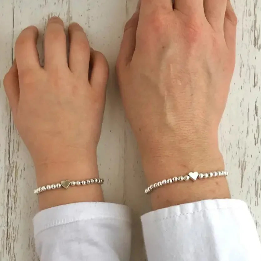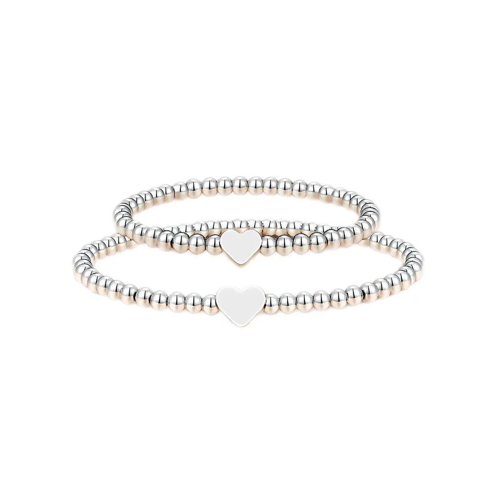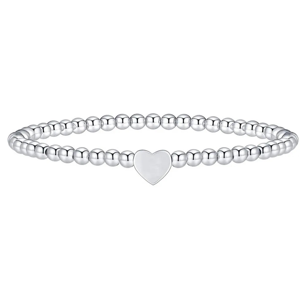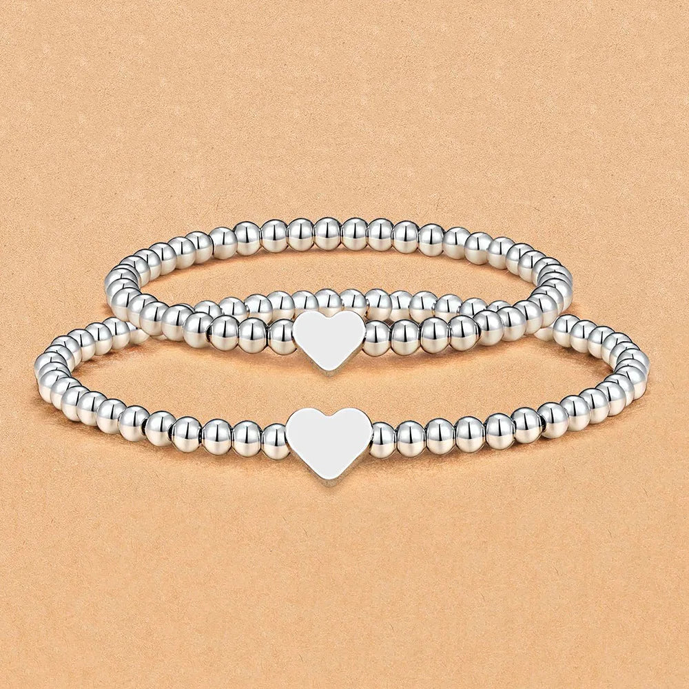 Men and Women's Durable Silver-Plated Stainless Steel Bead Bracelet with Cute Heart Charm Classic Style Bangle for Anniversaries