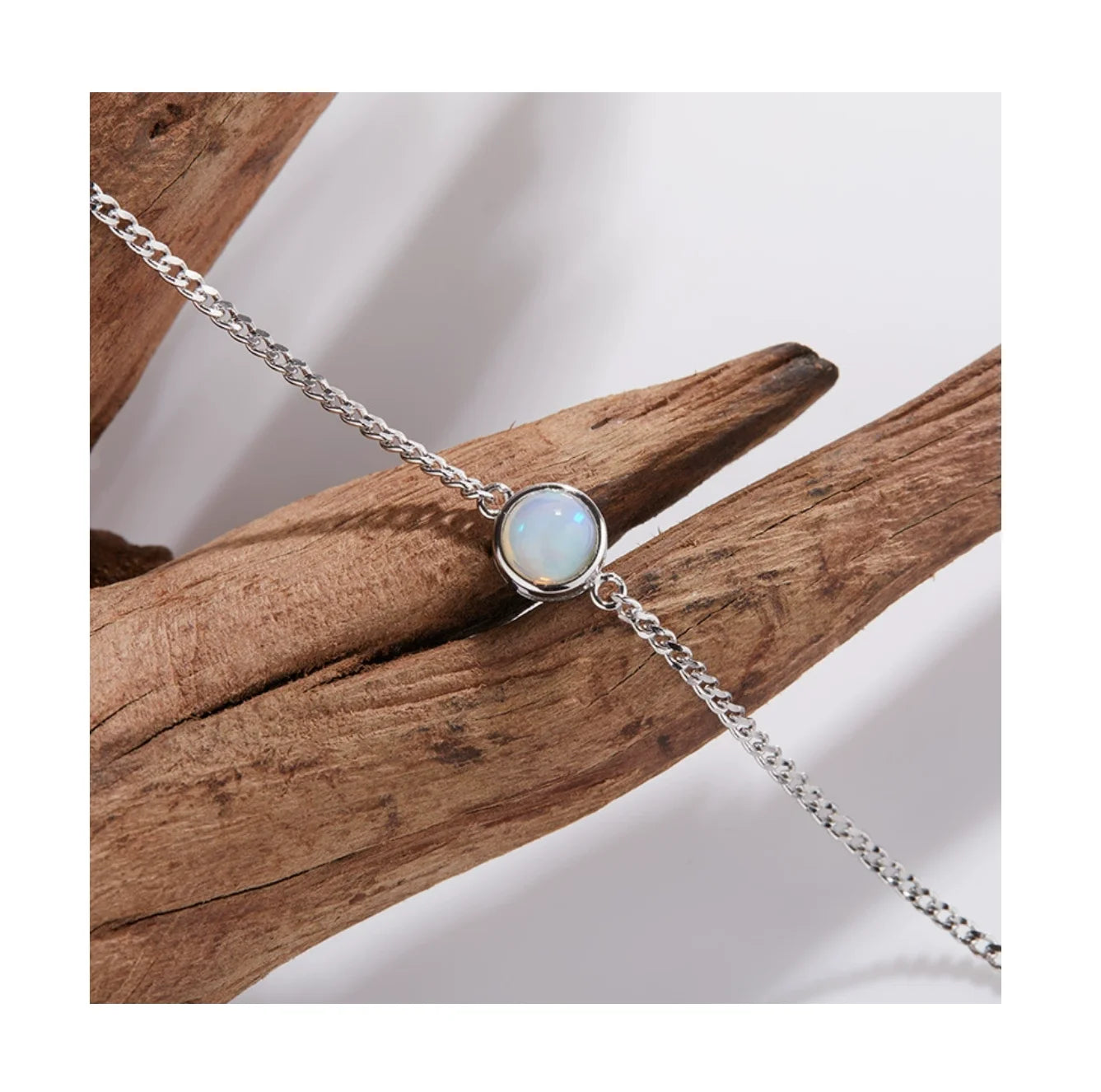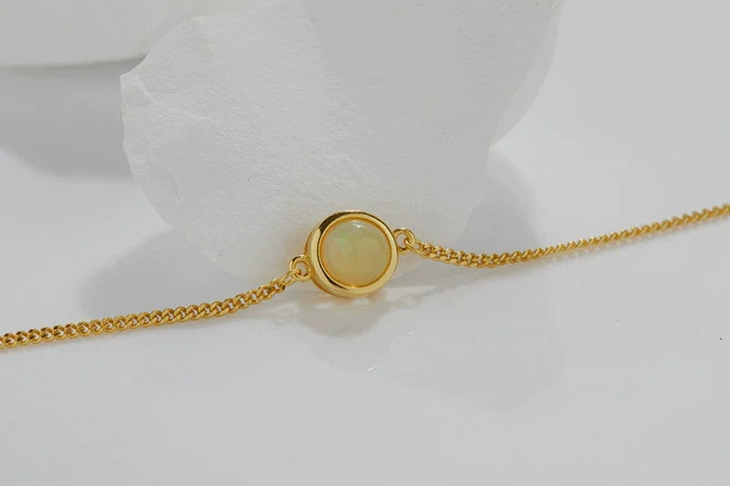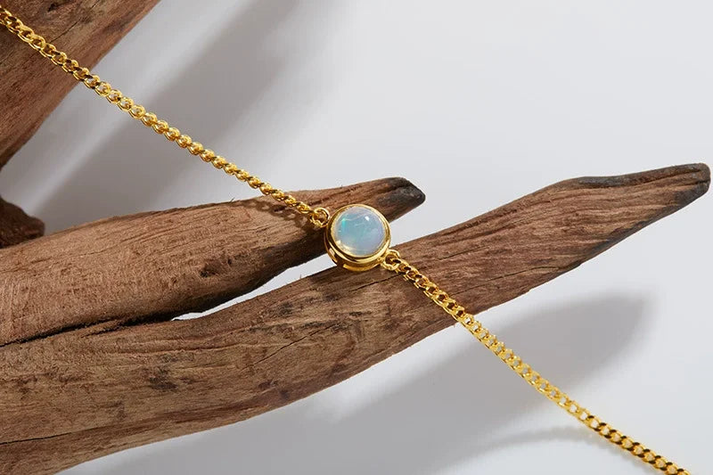 Stylish 925 Silver Chain 18K Gold Plated Gray Natural Opal Moonstone Bracelet for Daily and Dinner Wear