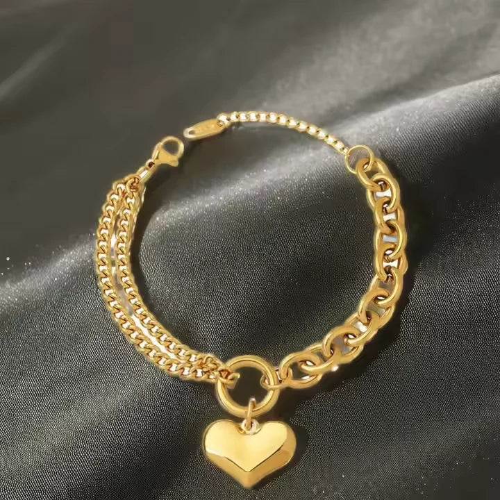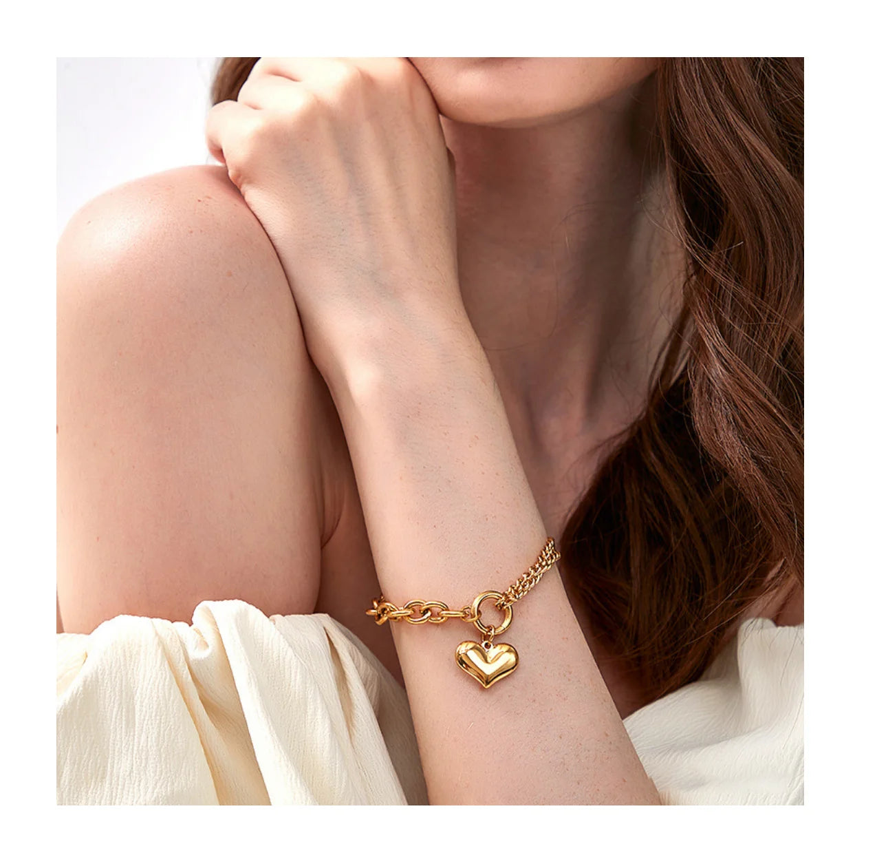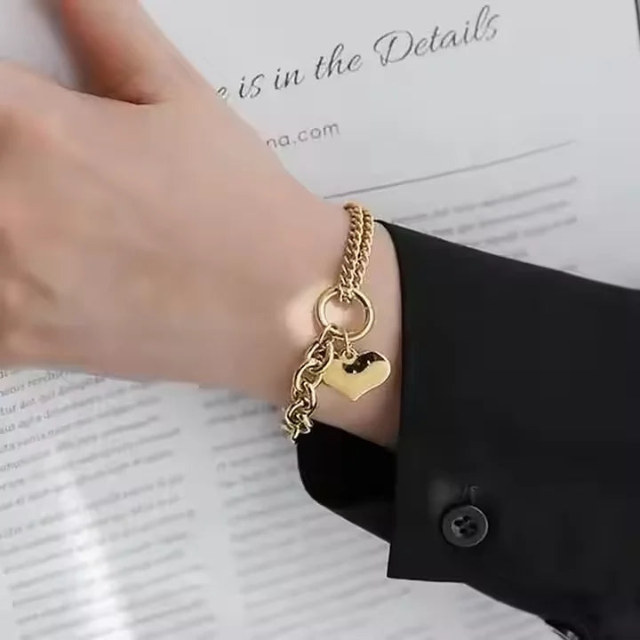 Summer 2025 Jewelry Stainless Steel Chunky Heart Pendant Bracelet for Women Trendy Statement Love Heart Adjustable Link Chain