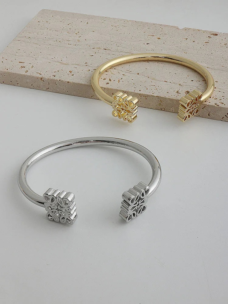 Sophisticated Elegant 18k Gold Plated Trendy Hollow Square Bangle Zinc Alloy Material for Fashion-Loving Women