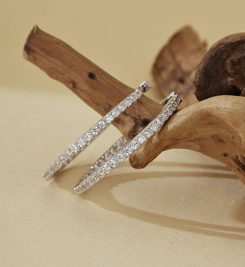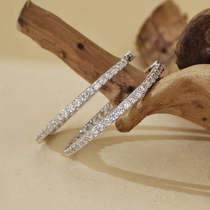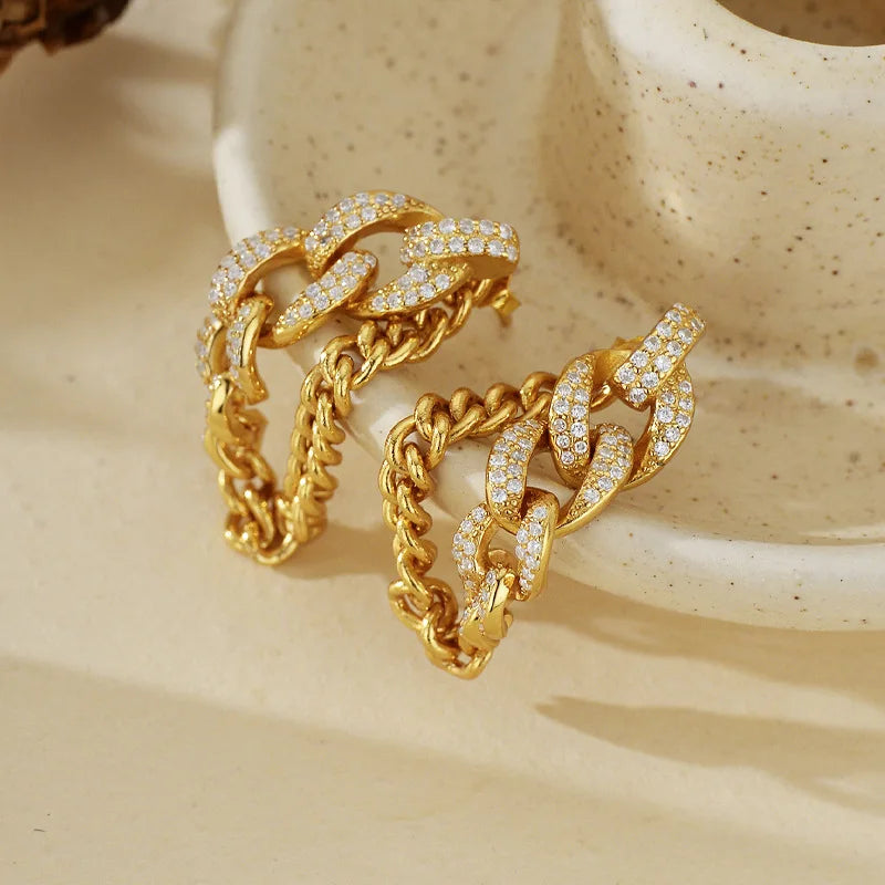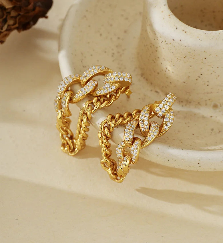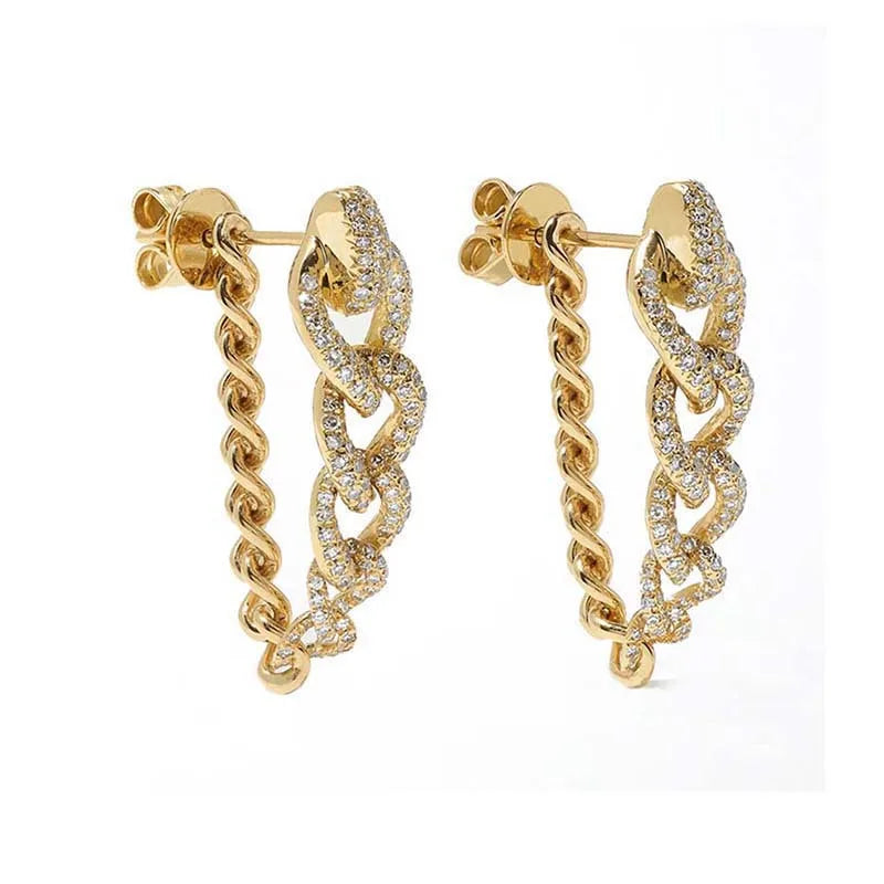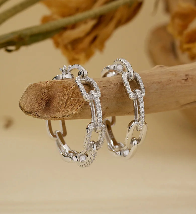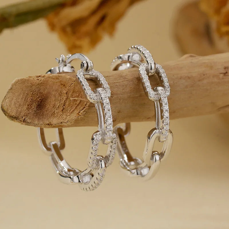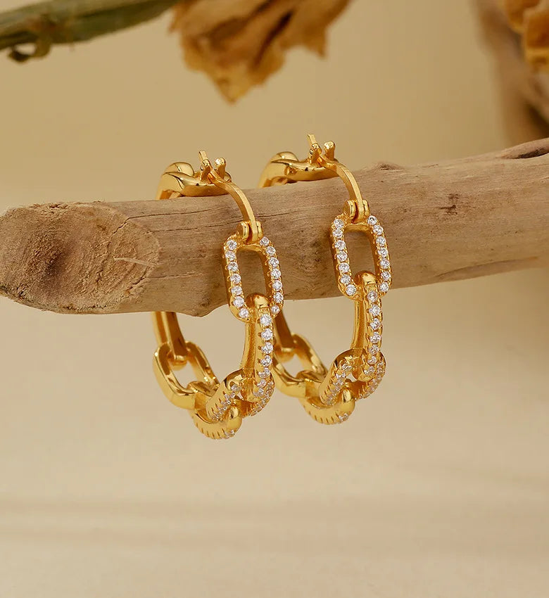 High Quality 925 Silver & Gold Plated Linked Earrings Trendy Sparkling Cubic Zirconia Elegant Hoop Jewelry for Gifts