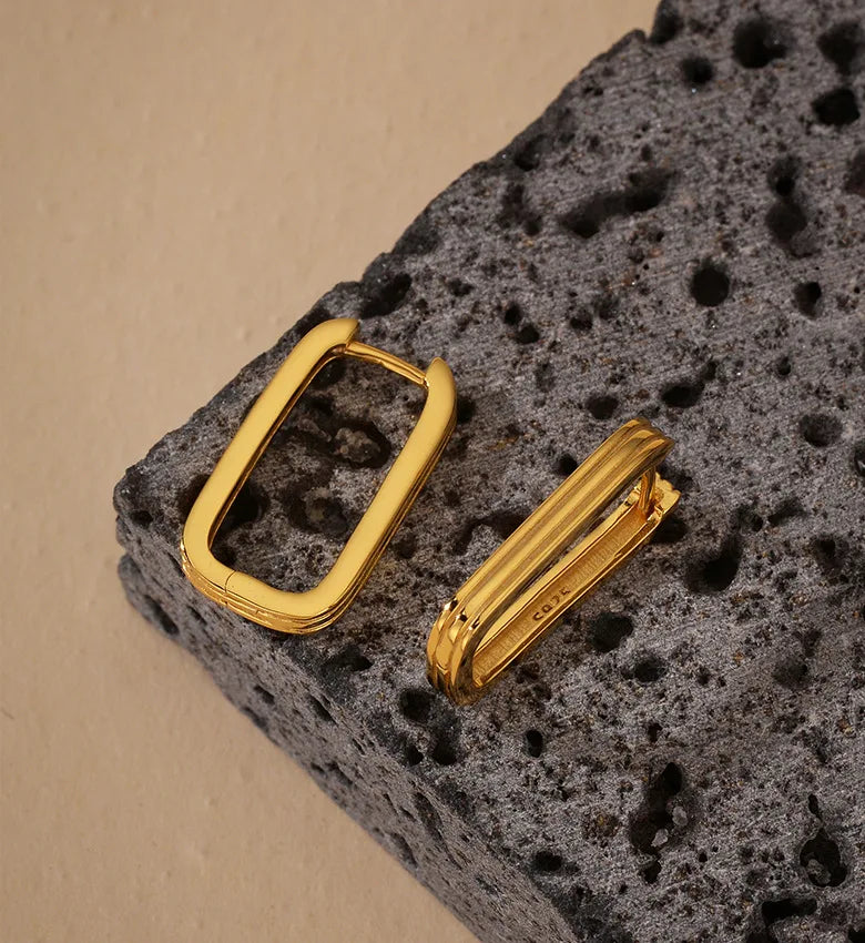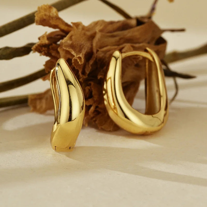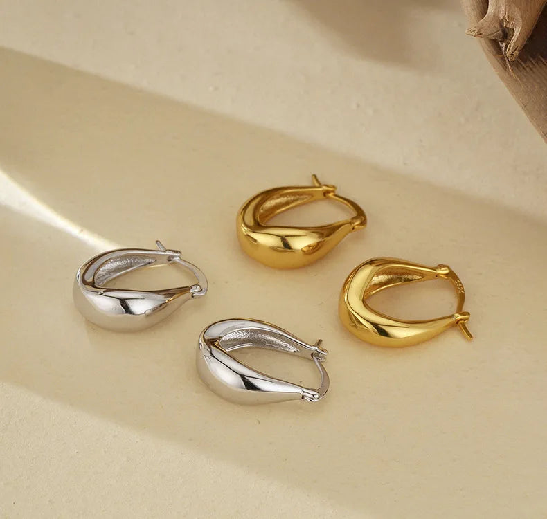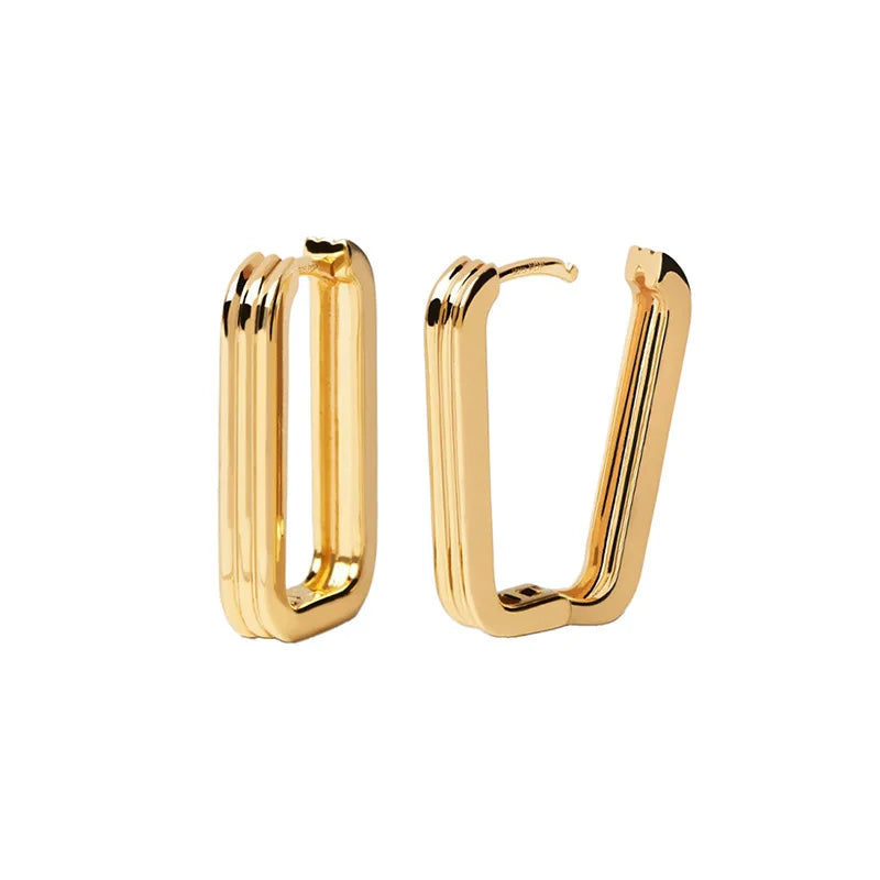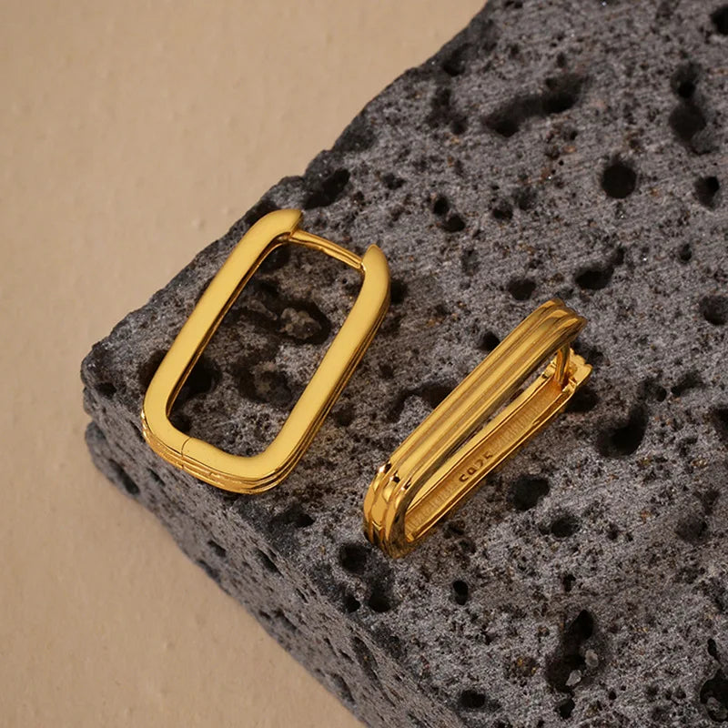 Trendy 18K Gold Plated Silver Geometric Earrings with Waterproof Design for Modern Women and Girls