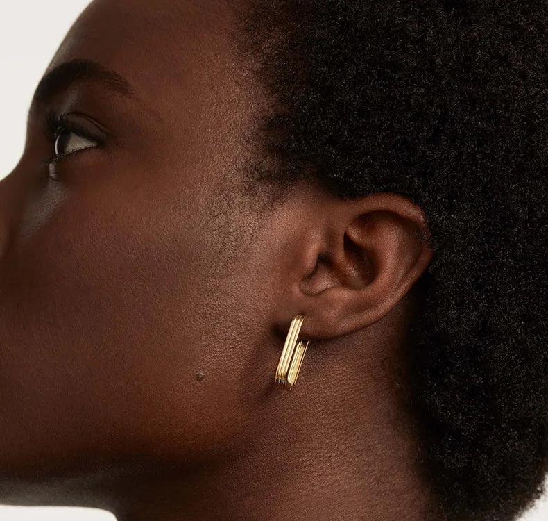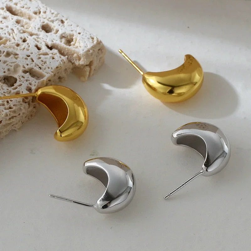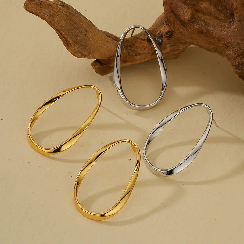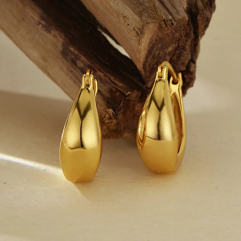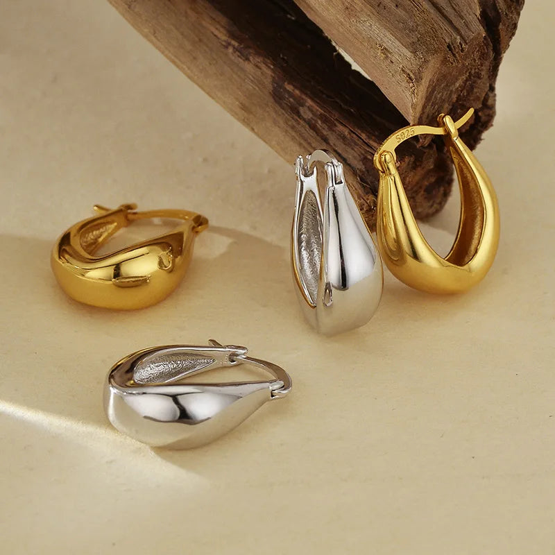 Trendy 18K Gold Plated Silver Geometric Earrings with Waterproof Design for Modern Women and Girls