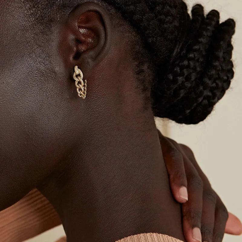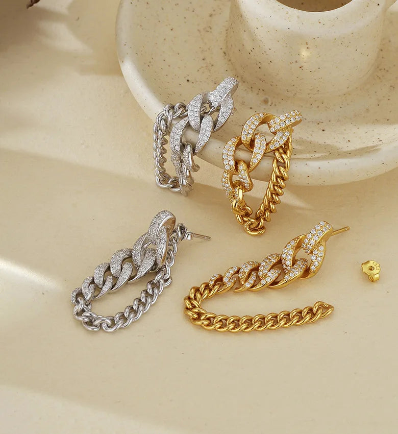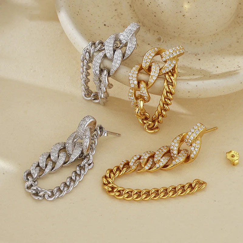 Trendy Large Size 925 Silver Convertible Stud Earrings for Women High Quality Metal Cuban Zircon Heavy Curb Link Chain for Gift