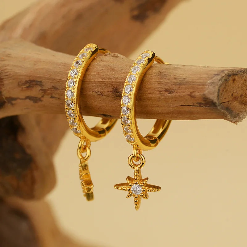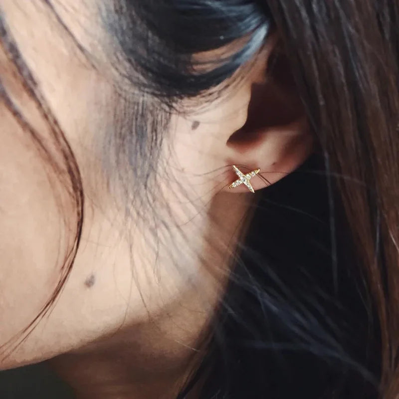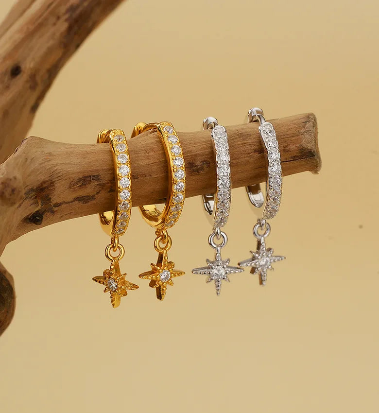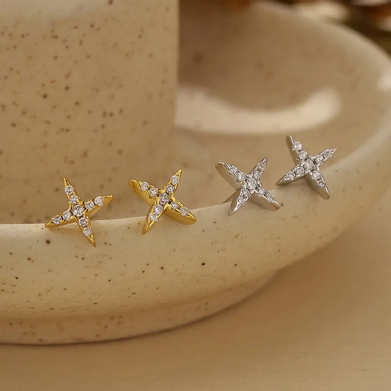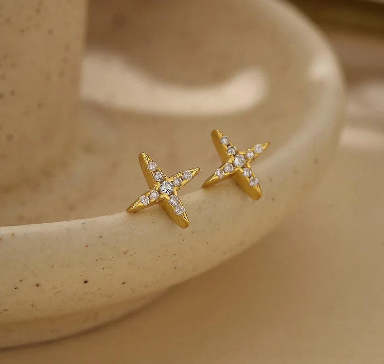Trendy Vintage Elegant Zircon 925 Sterling Silver Dainty Jewelry Crystal Star Shiny Zircon Earrings for Girls