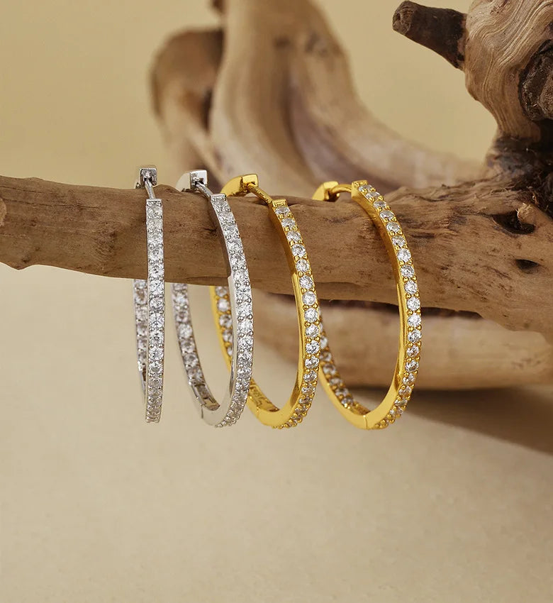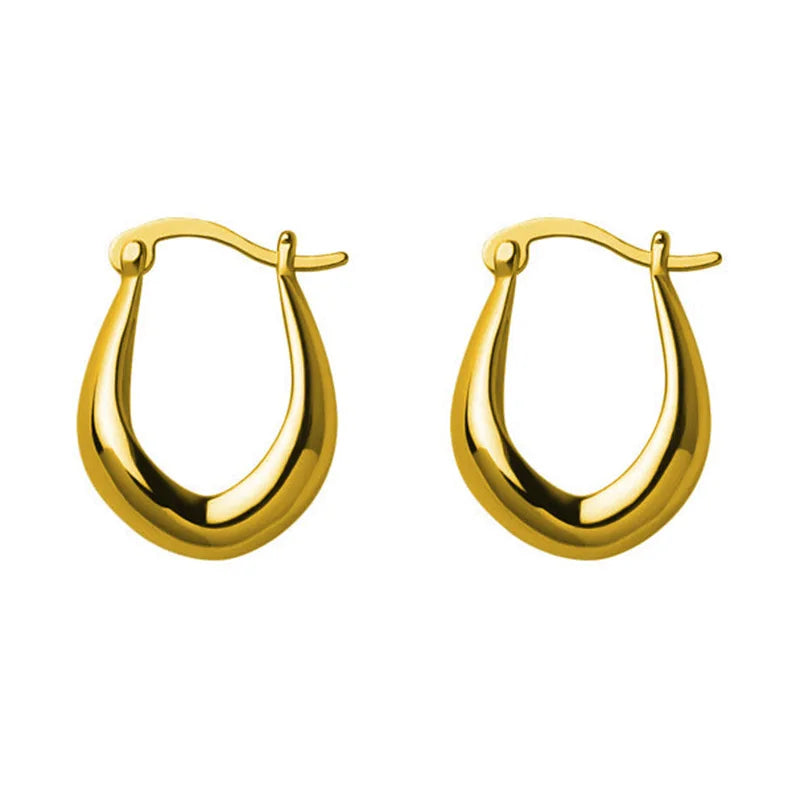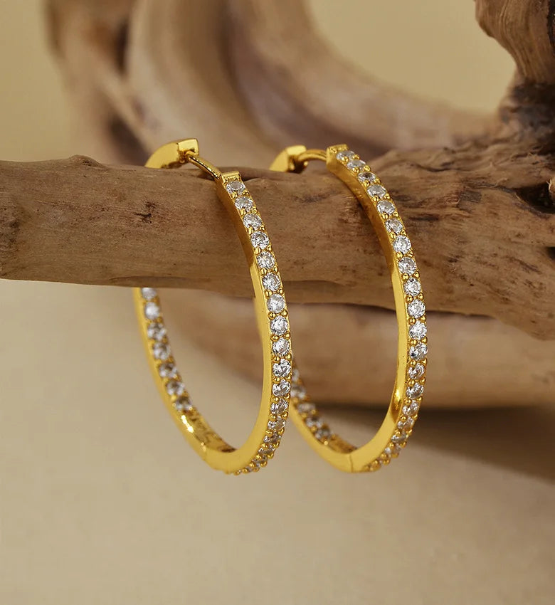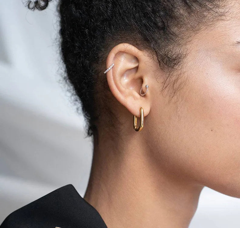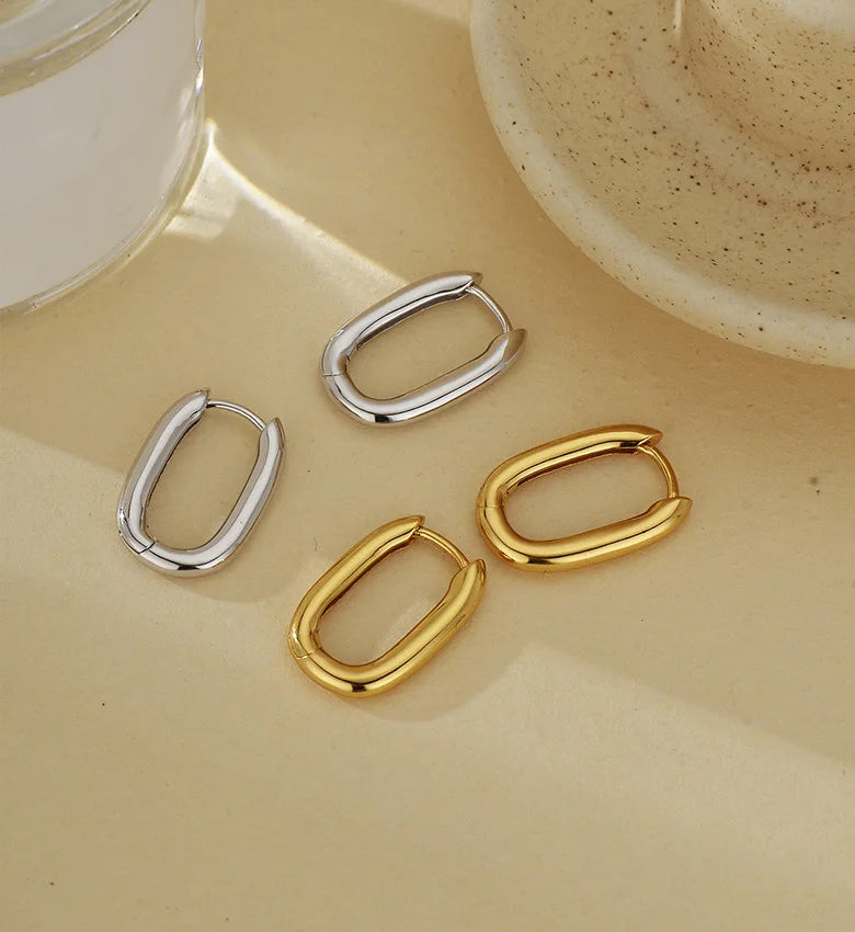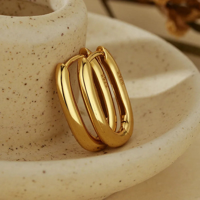 Premium 925 Sterling Silver Gold-Tone U-Shaped Hoop Earrings with Crystal Accents Elegant Oval Design