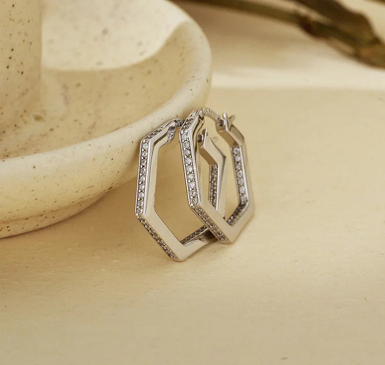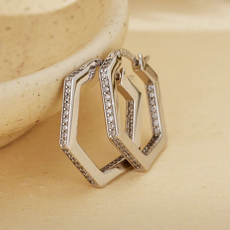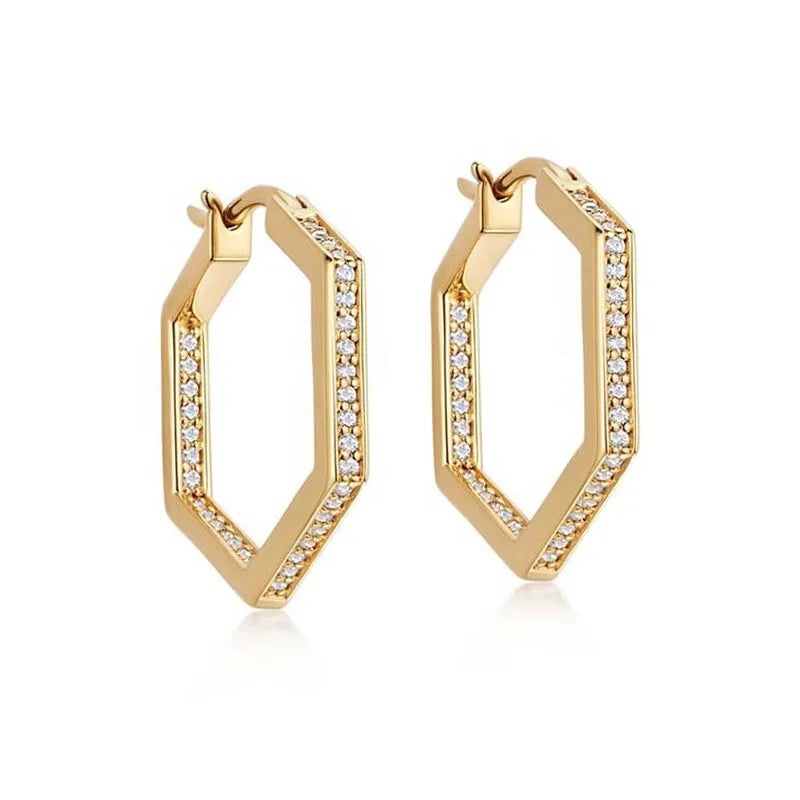 Trendy Fashion Minimalist Delicate Hexagon Hoop Earring Custom Jewelry Hot Sale Geometric Pave Hexagon Hoop Earring for Girls