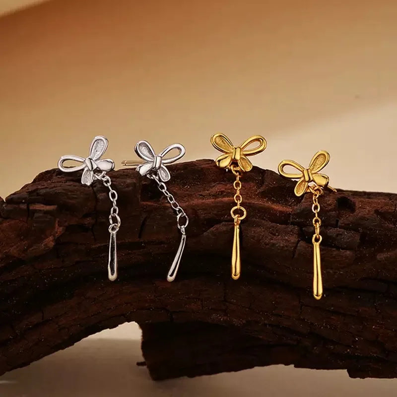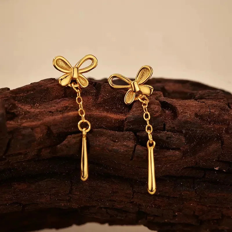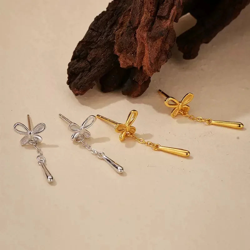 Wholesale 925 Sterling Silver Butterfly Tassel Earrings for Women Trendy 18K/14K Gold Plated Dangle Earring