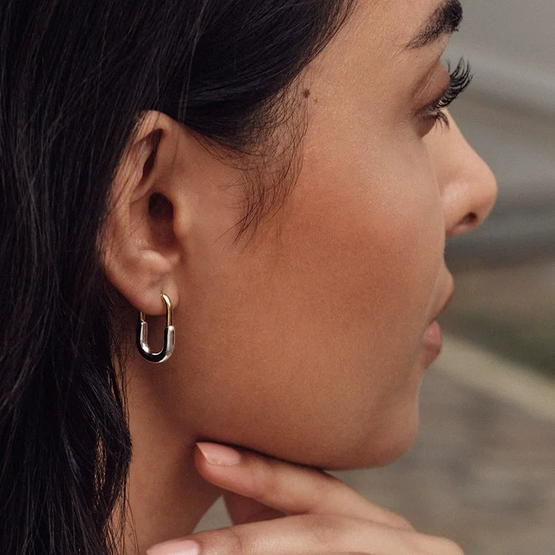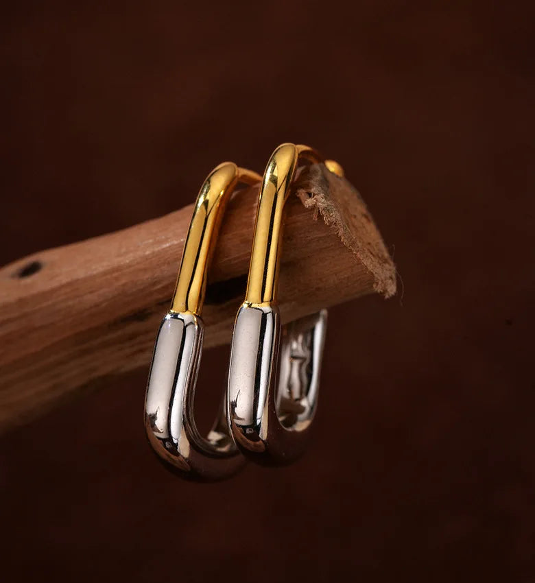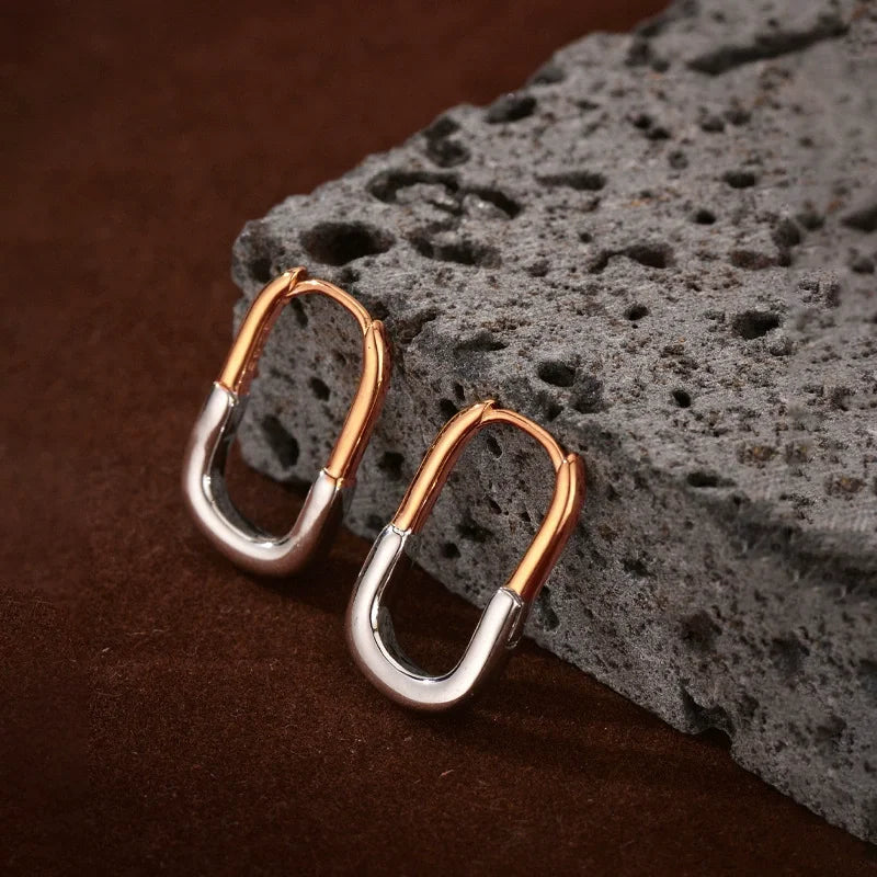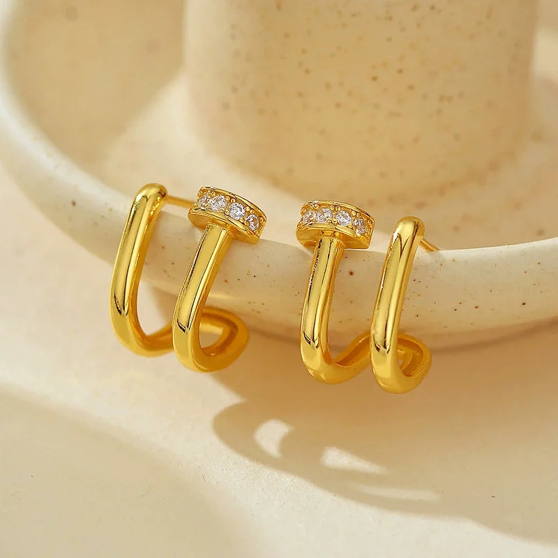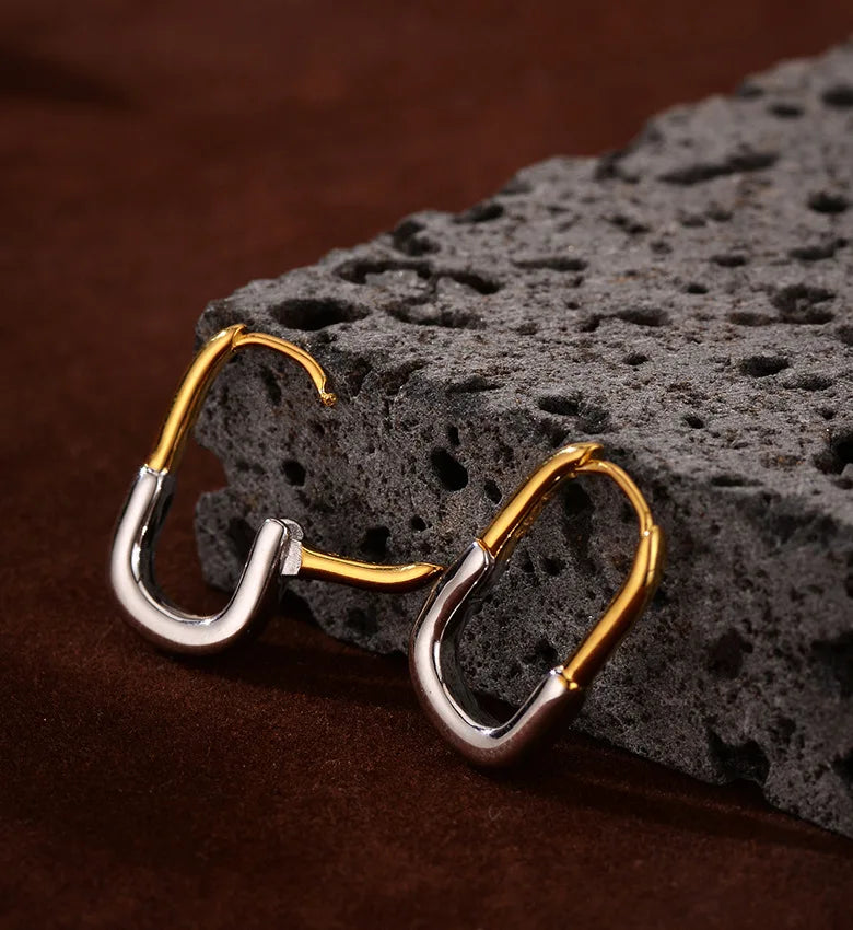 Trendy Women's Jewelry 925 Sterling Silver Double Hexagon Earrings Lightweight Hypoallergenic 18K Gold Plated Huggies Earrings