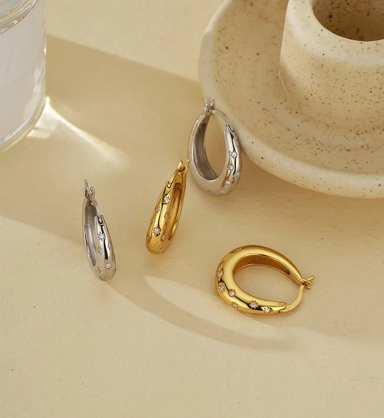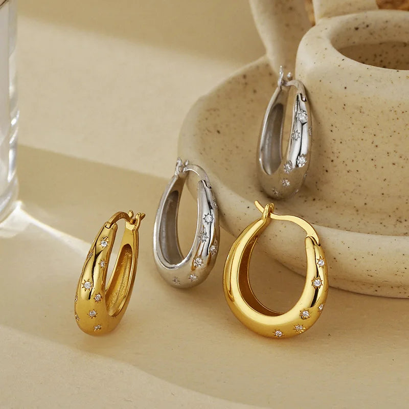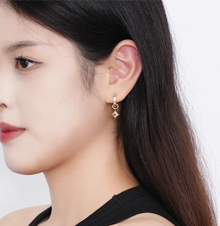 Fashion Earrings 20235 S925 Pure Silver Zircon Earrings 18K Gold Plated Star Hoop Earrings for Women Gift