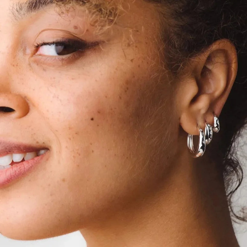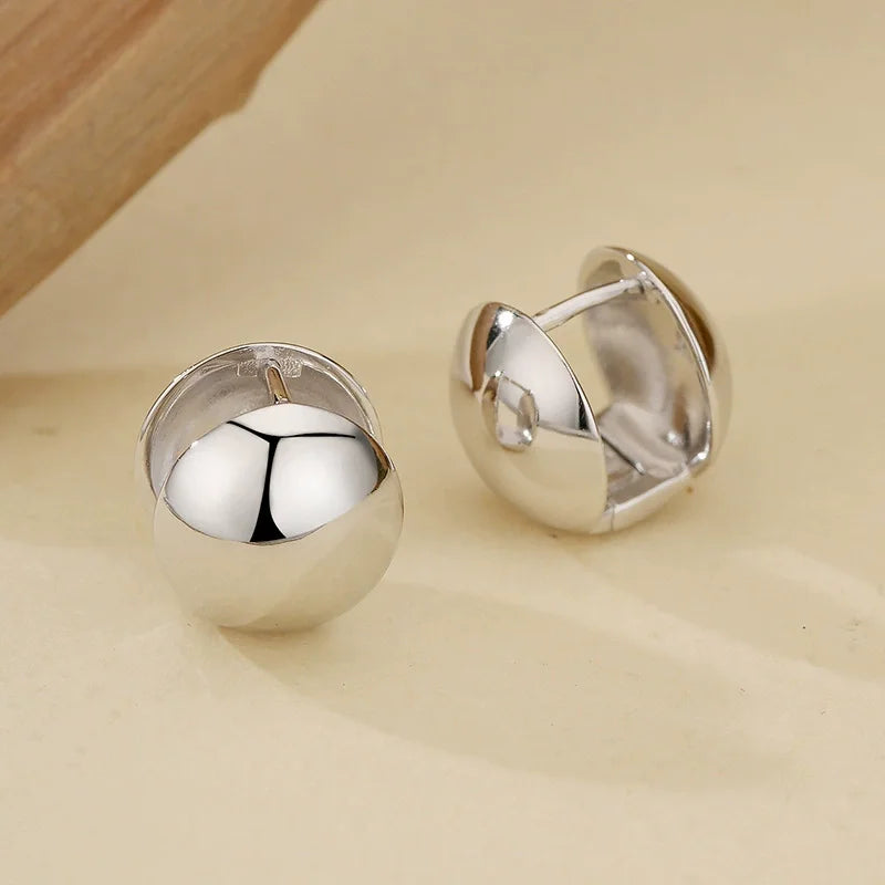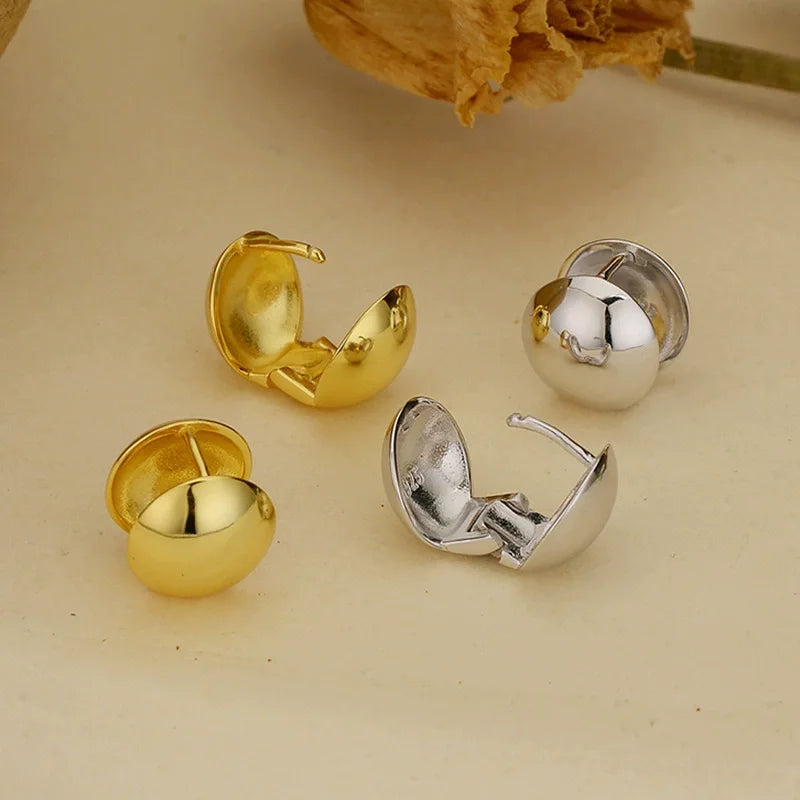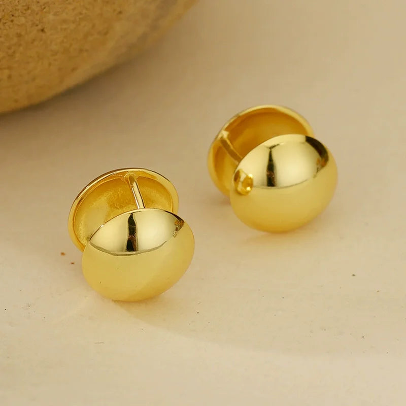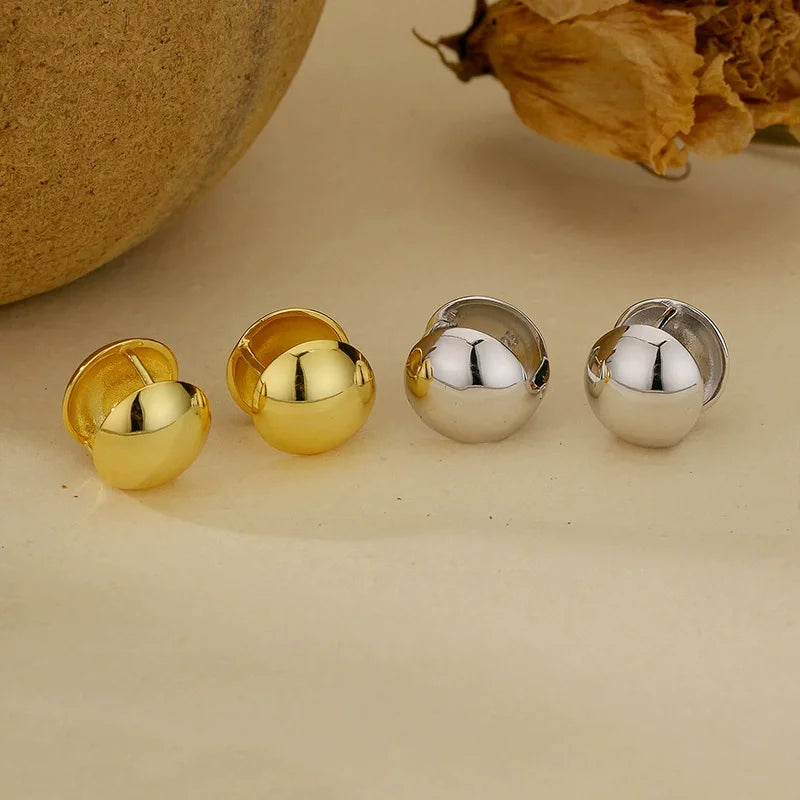 Trendy Gold Plating Small Glossy Earring Minimalist Geometry 925 Sterling Silver Round Ball Hoop Earrings for Women
