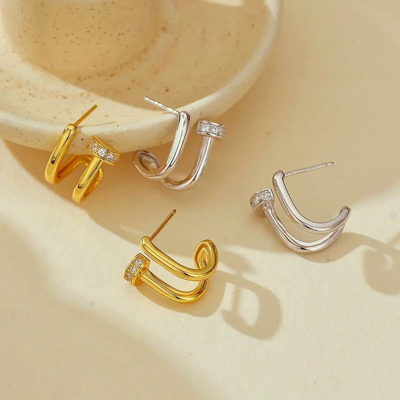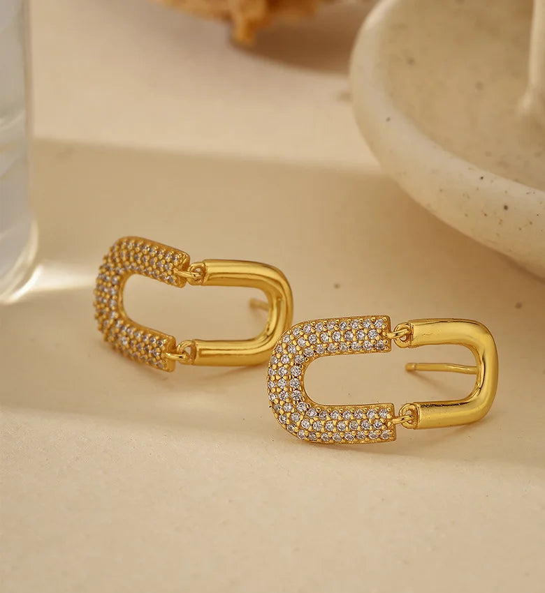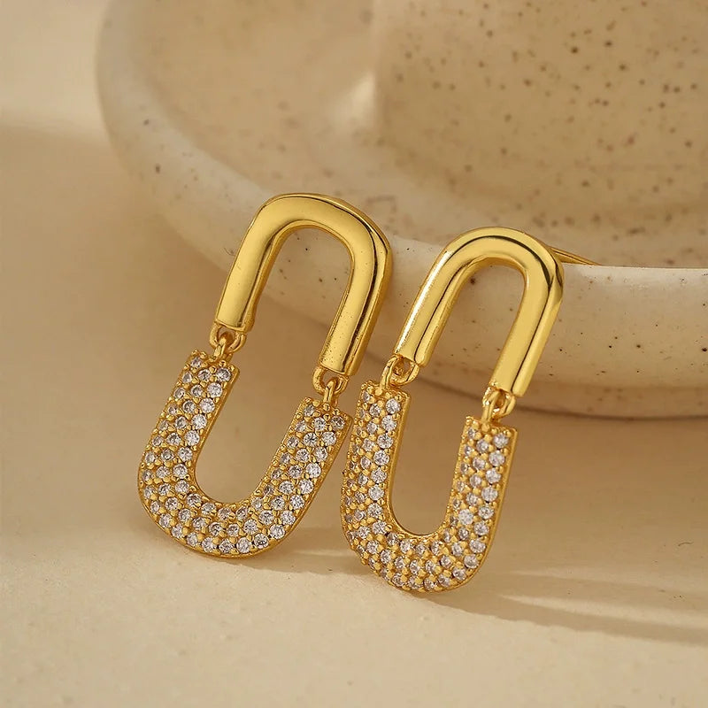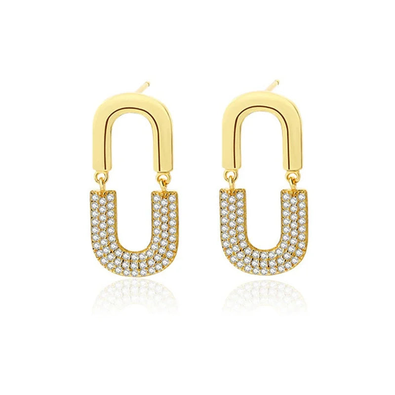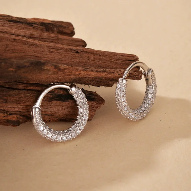 Luxury 925 Sterling Silver U-Shaped Earrings for Women Hypoallergenic Dense Cubic Zirconia Hoop Earrings Jewelry Gift