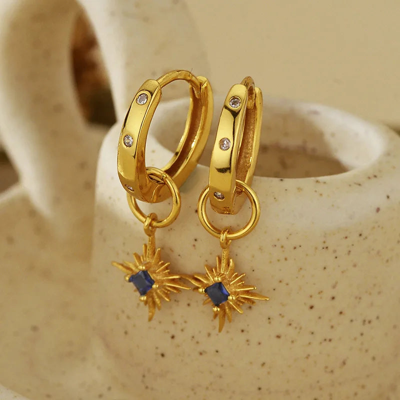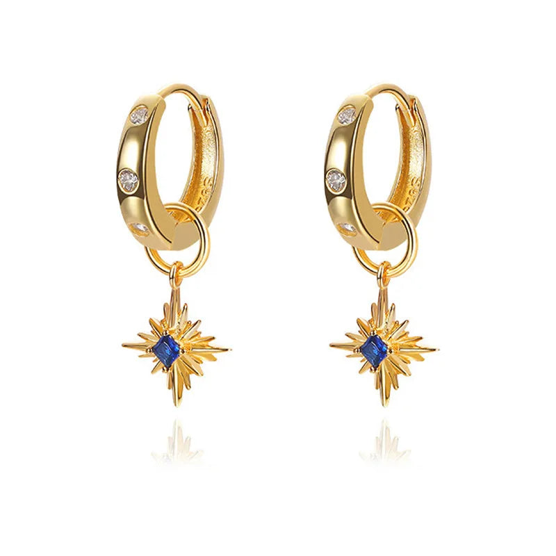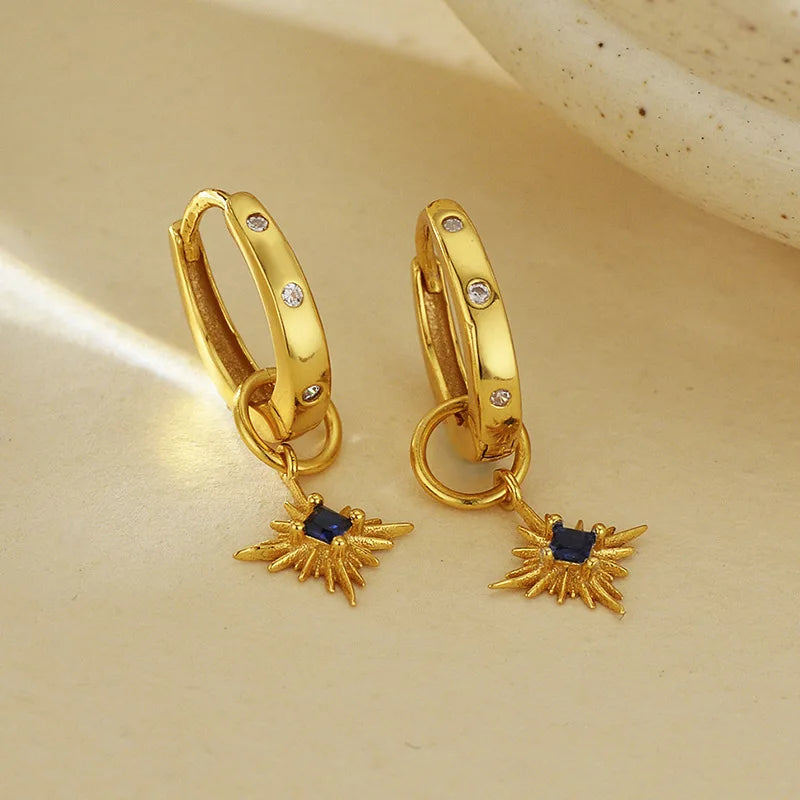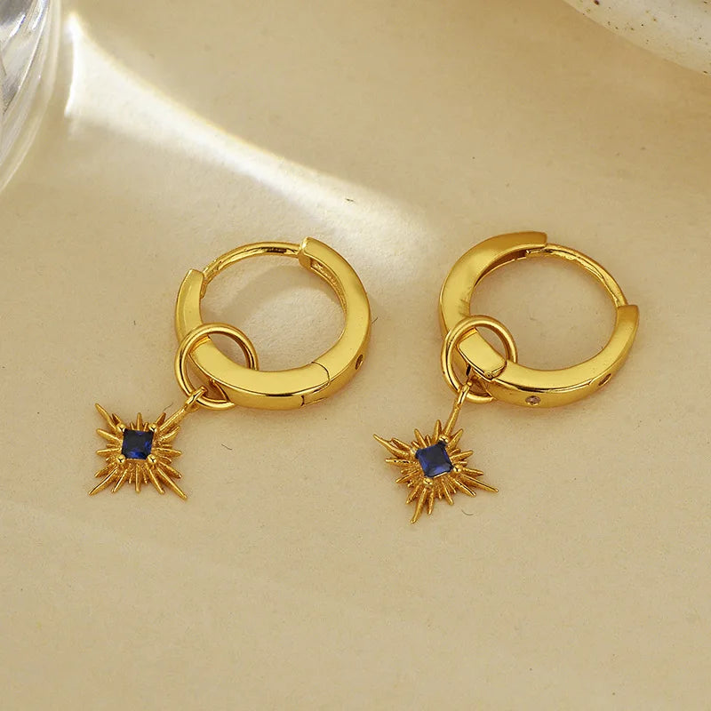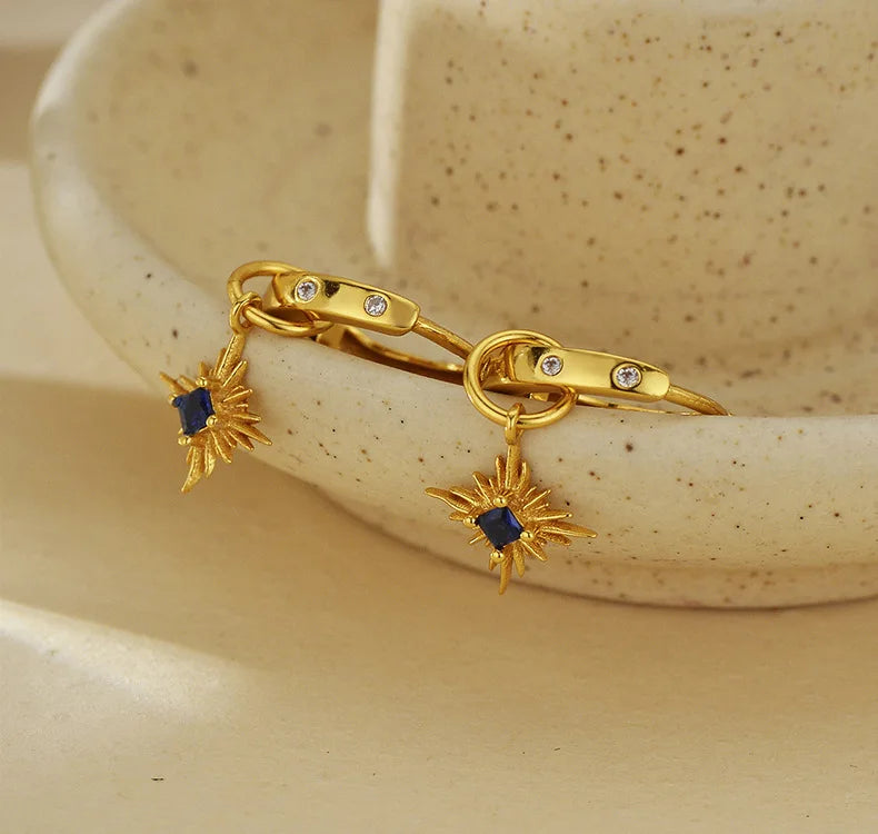 New Fashion 18K Gold Plated Fashion Hoop Earrings Vintage Sapphire Pendant Earrings for Women Gift