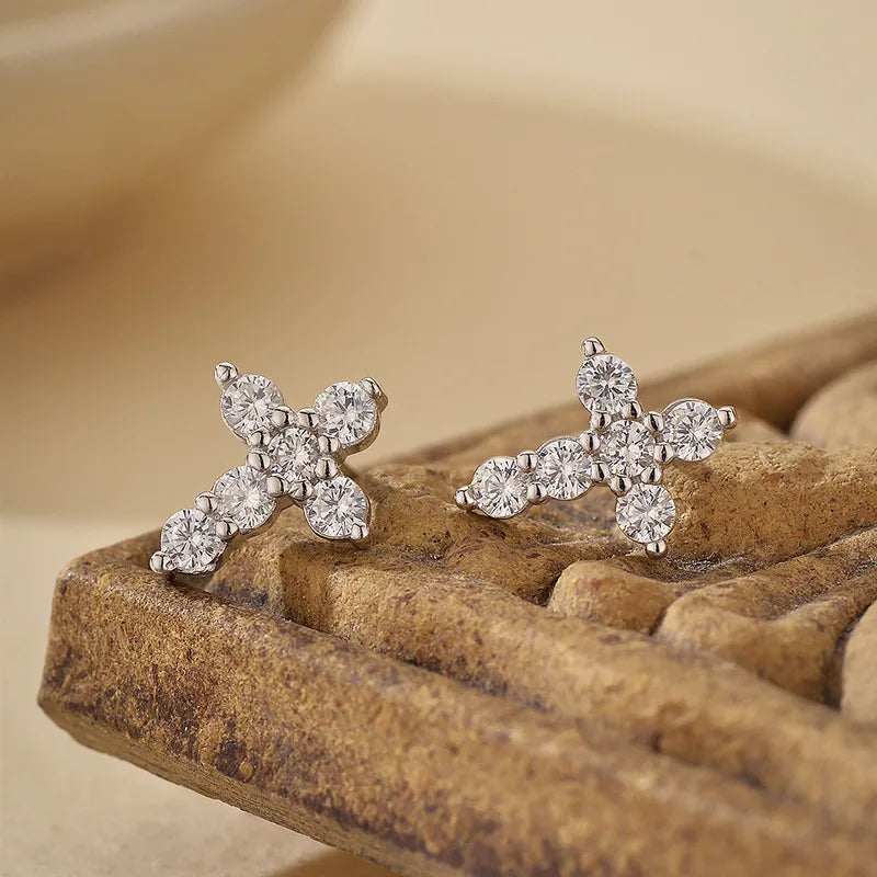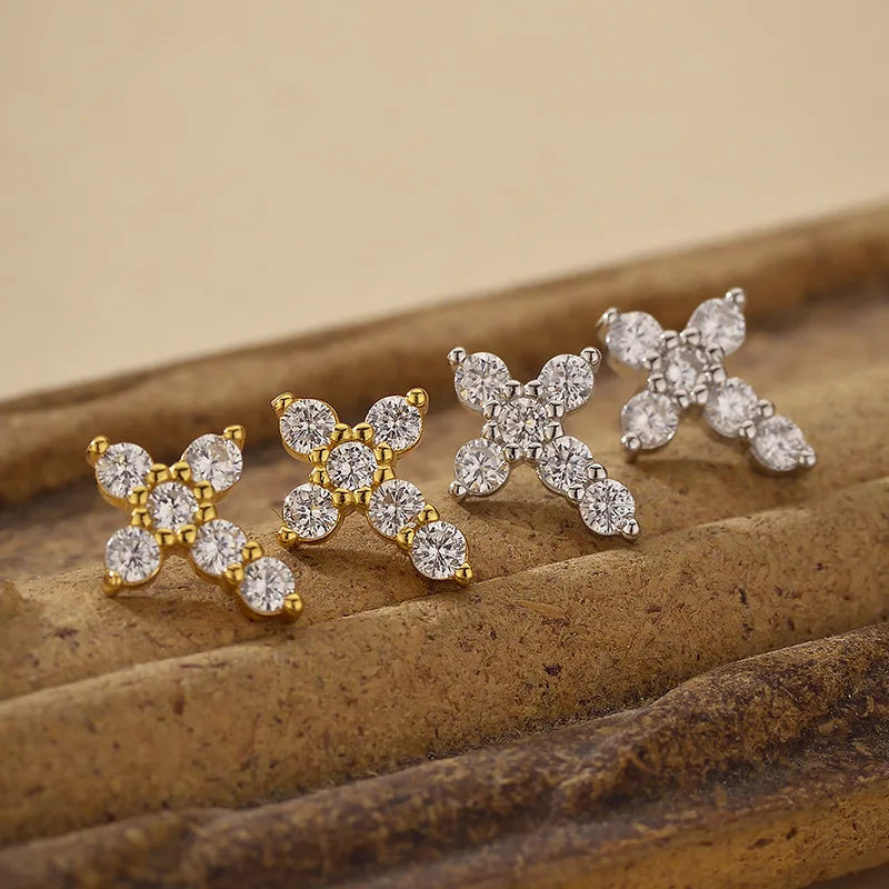 Trendy Earrings 2025 925 Sterling Silver Cross Zircon Earrings Wholesale Bulk Fashion Stud Earrings for Women Gift