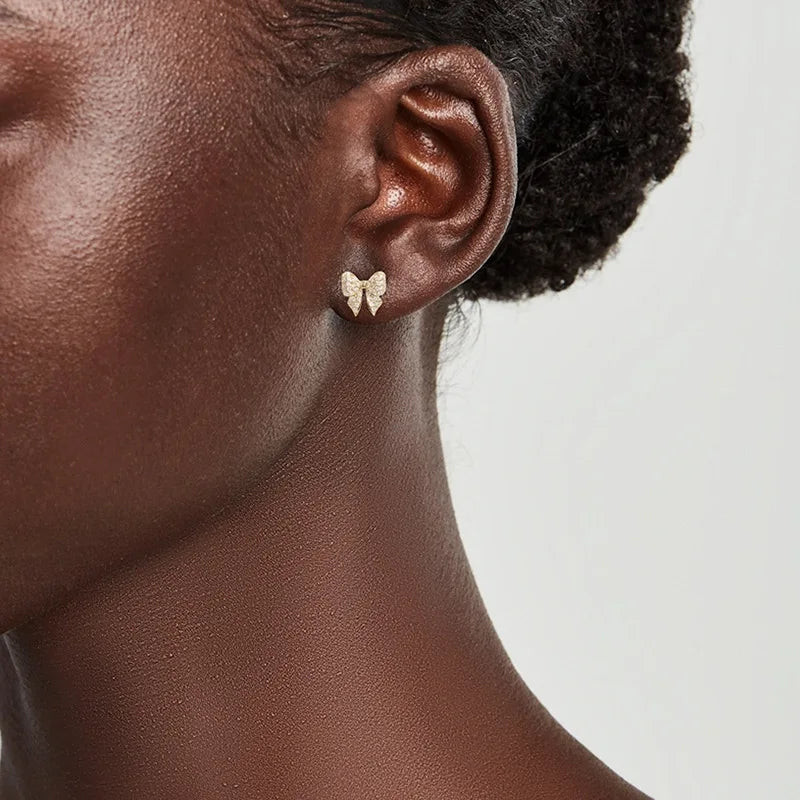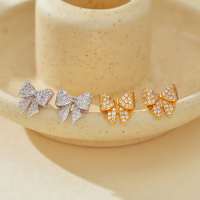 Trendy Earrings 2025 925 Sterling Silver Bow Knot Zircon Earrings Wholesale Bulk Fashion Stud Earrings for Women