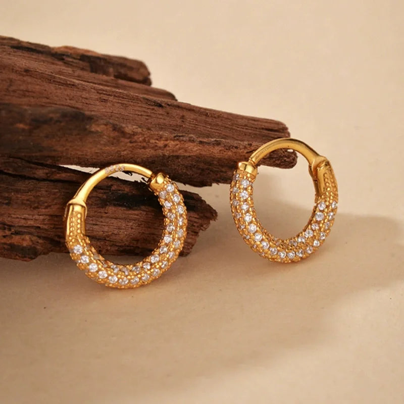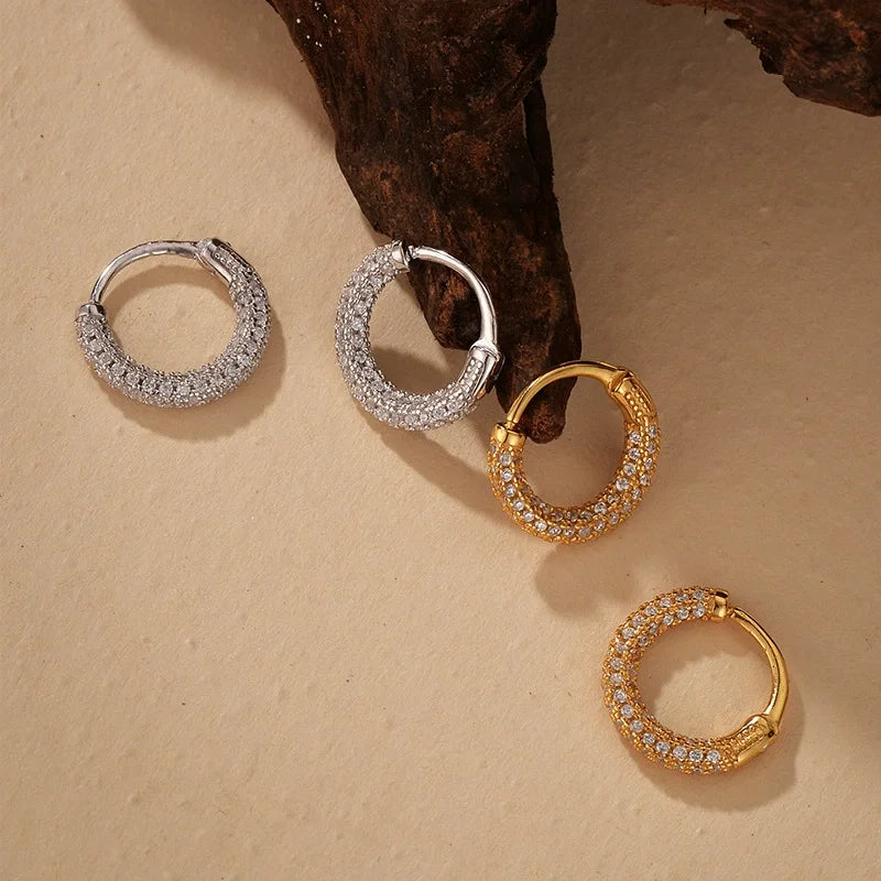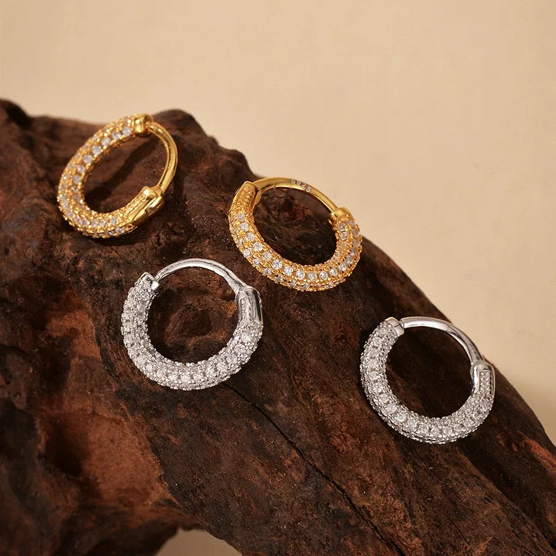 Fine Jewelry 925 Sterling Silver Micro Pave Cubic Zircon Earring for Girls Trendy 18K Gold Plated Hoop Earrings for Gift