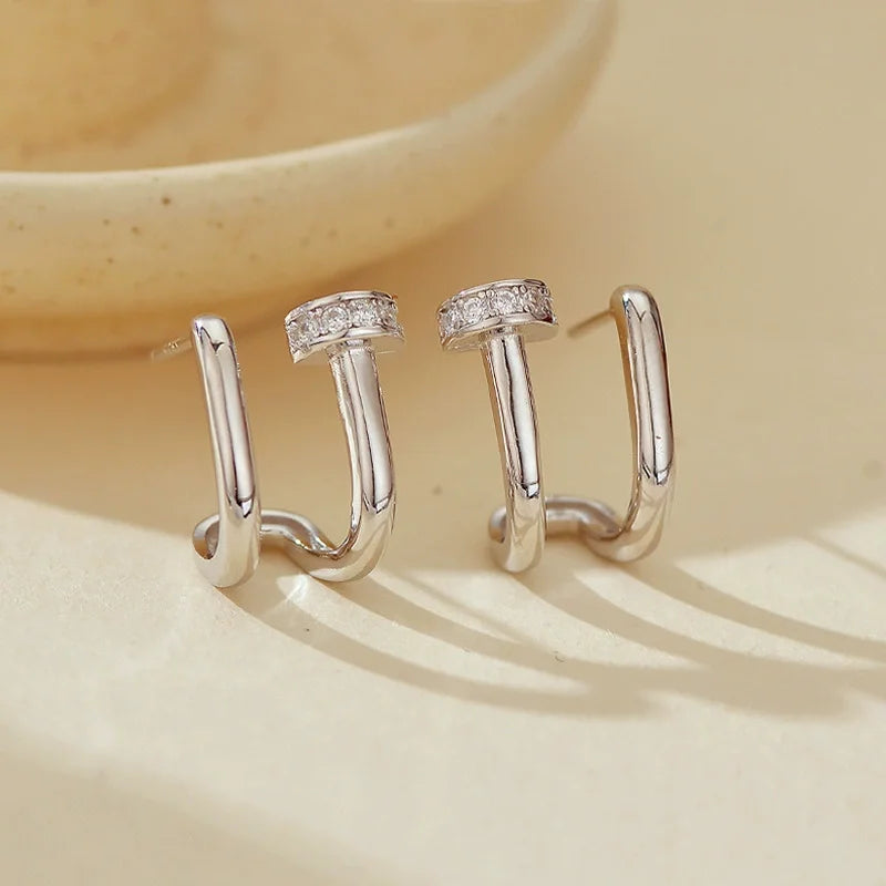 2025 Trending Product Jewelry 925 Sterling Silver Rivet Spike Earrings with Zirconia Adjustable Dangle Hoops Earrings for Women