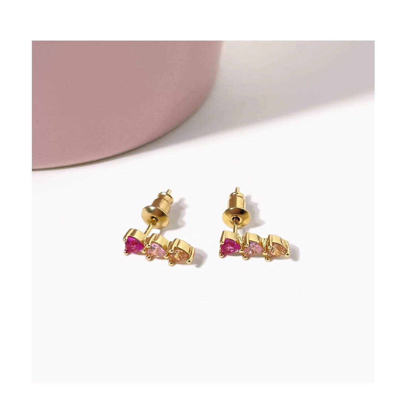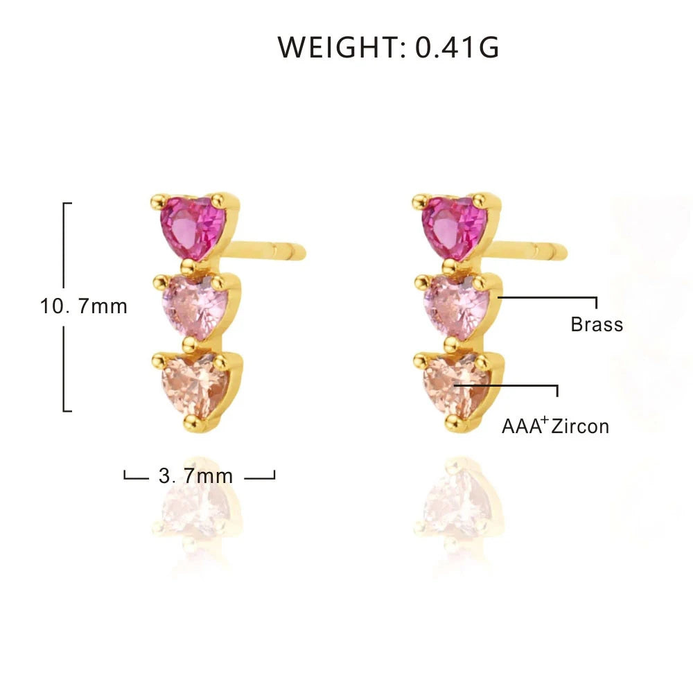 Fashionable Triplet Heart Gem Earrings for Women Gold Plated Cubic Zirconia Claw Heart Drop Jewelry