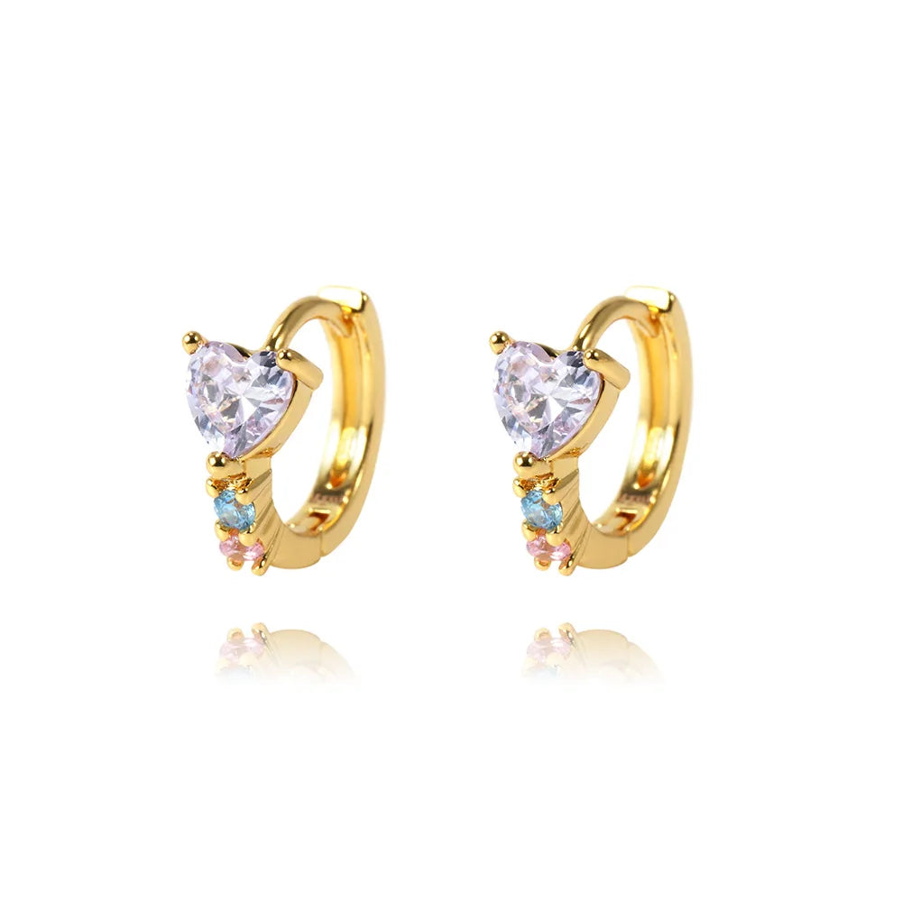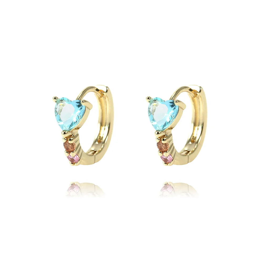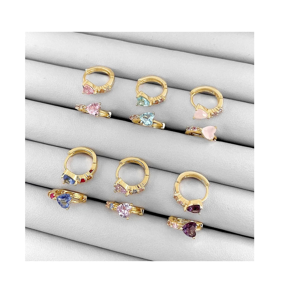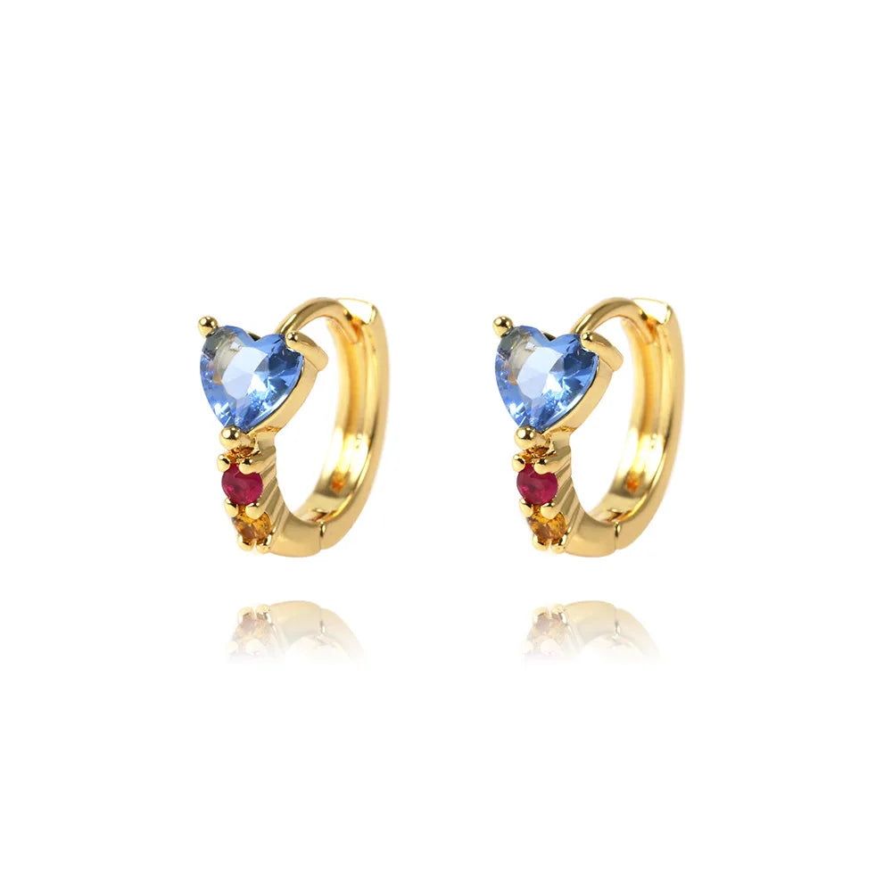 High Quality Multi Colors Gemstone Heart Hoop Earrings Fashionable Gold-Plated Heart Huggies Earrings for Valentine's Day Wear