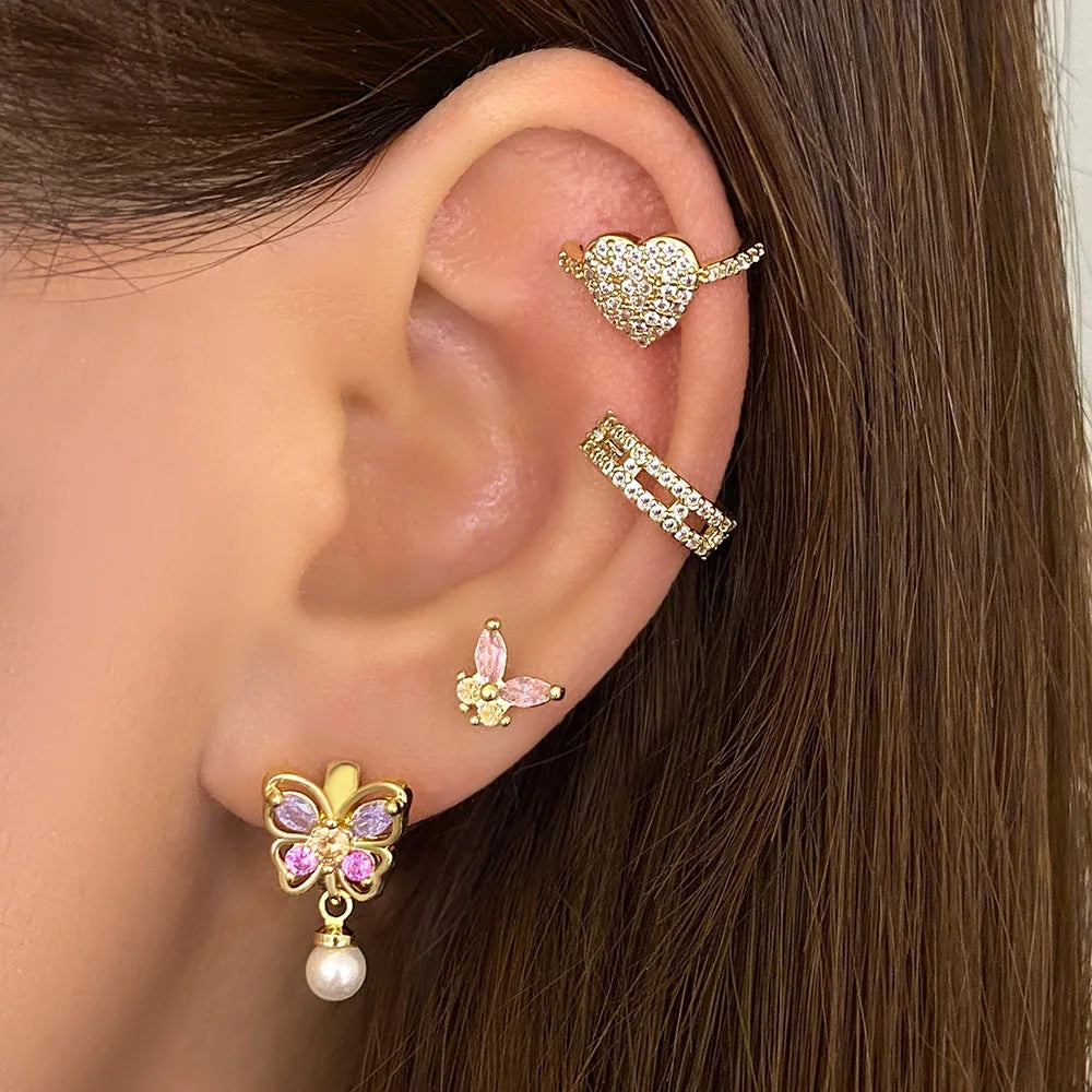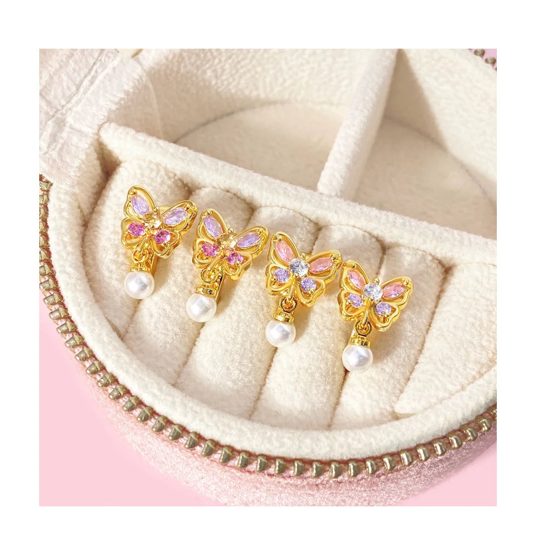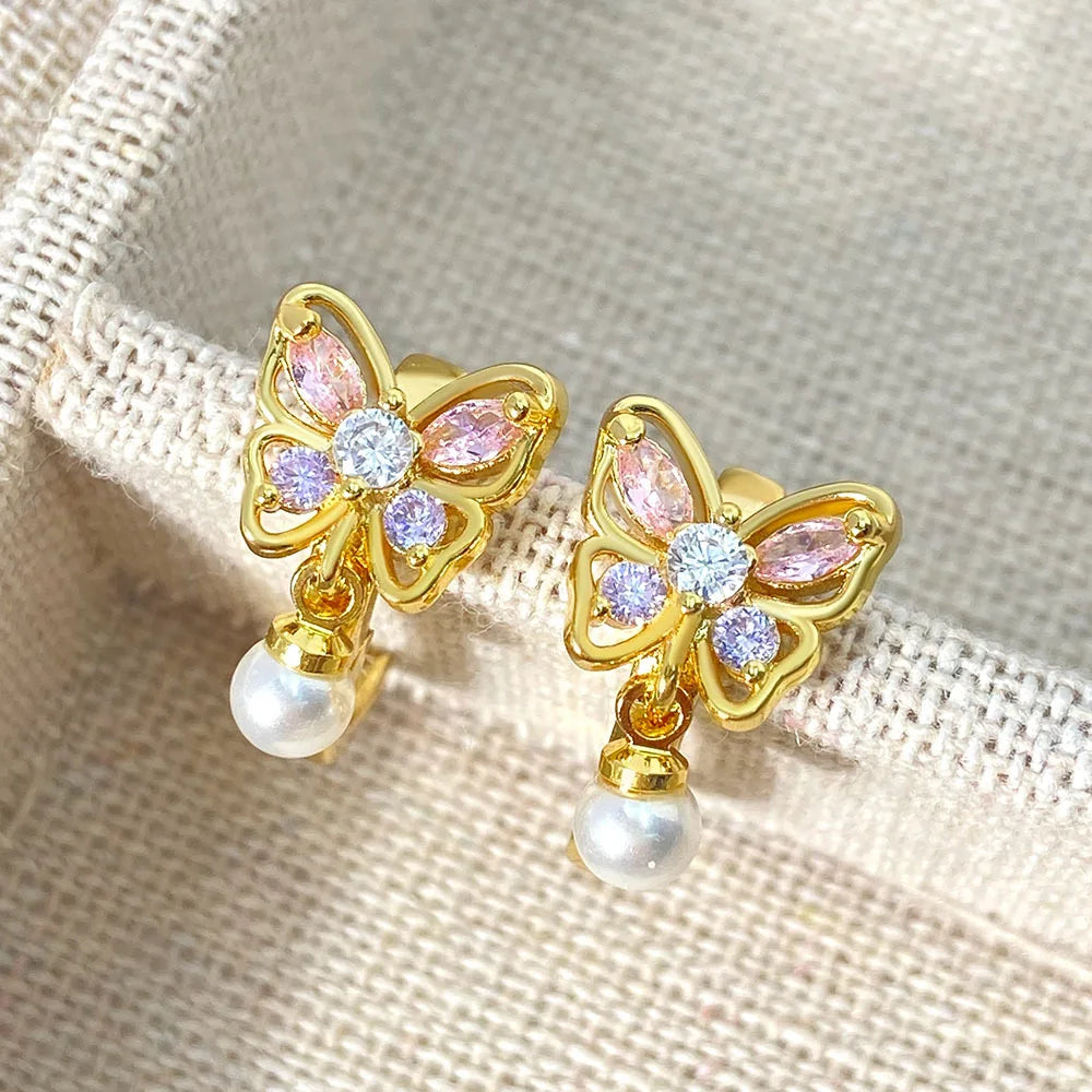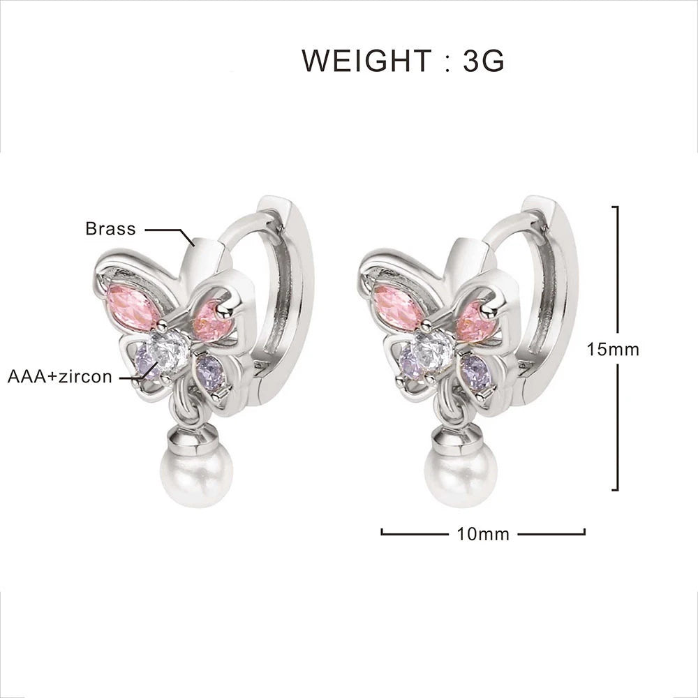 Trendy Gold Plated Cubic Zirconia Pearl Butterfly Hoop Earrings for Women Full Diamond Star Butterfly Earrings Jewelry