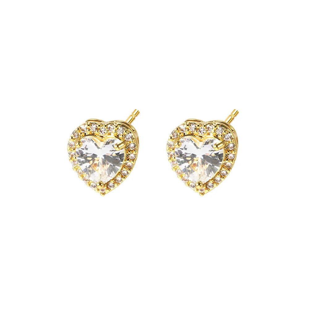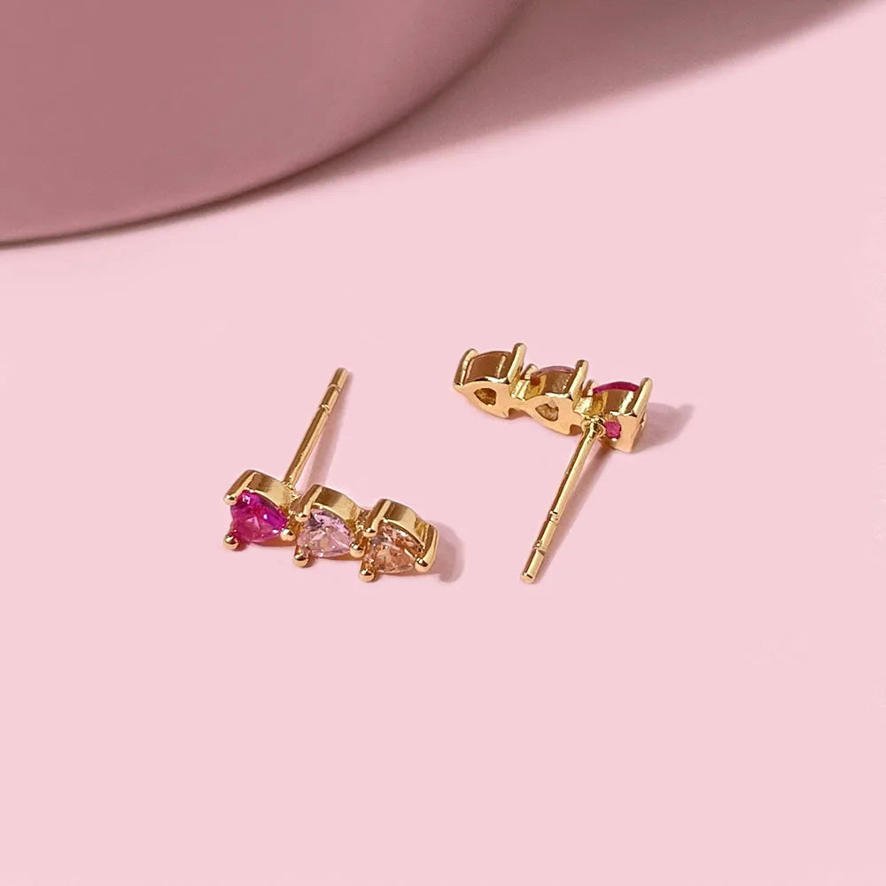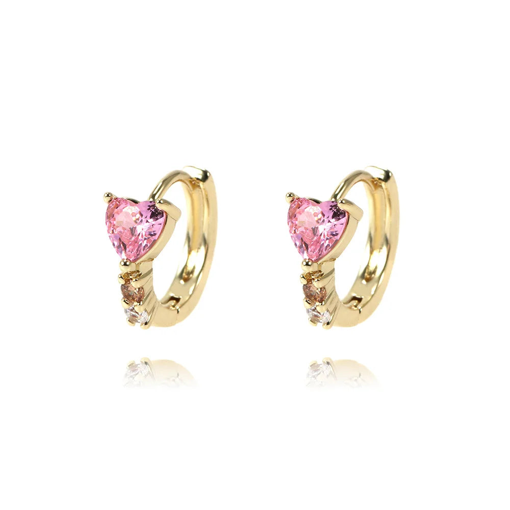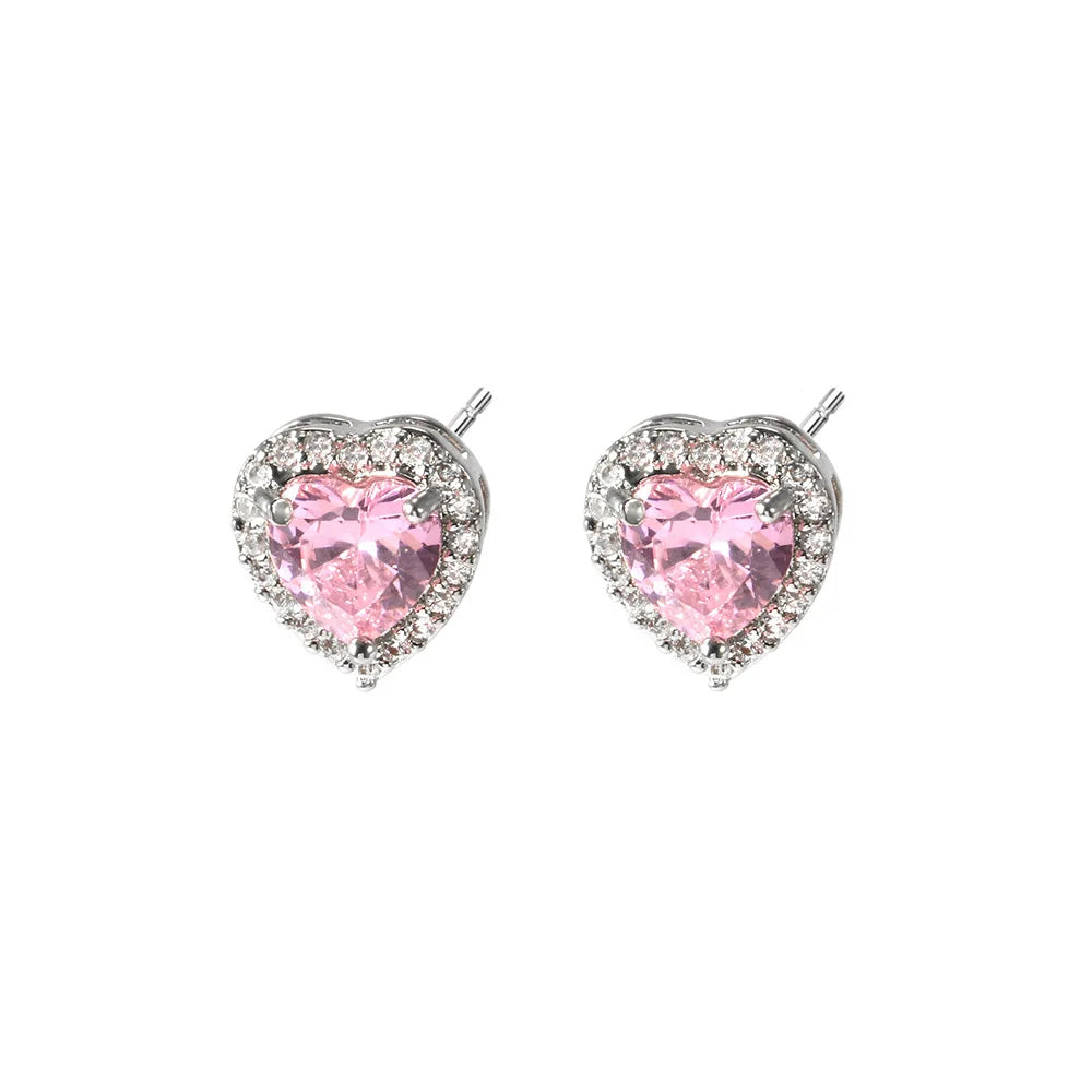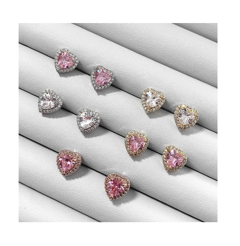 Latest Fashion Gold Plated Heart Shaped Pink Zirconia Diamond Stud Earring for Women Wholesale Fashion Heart Earrings