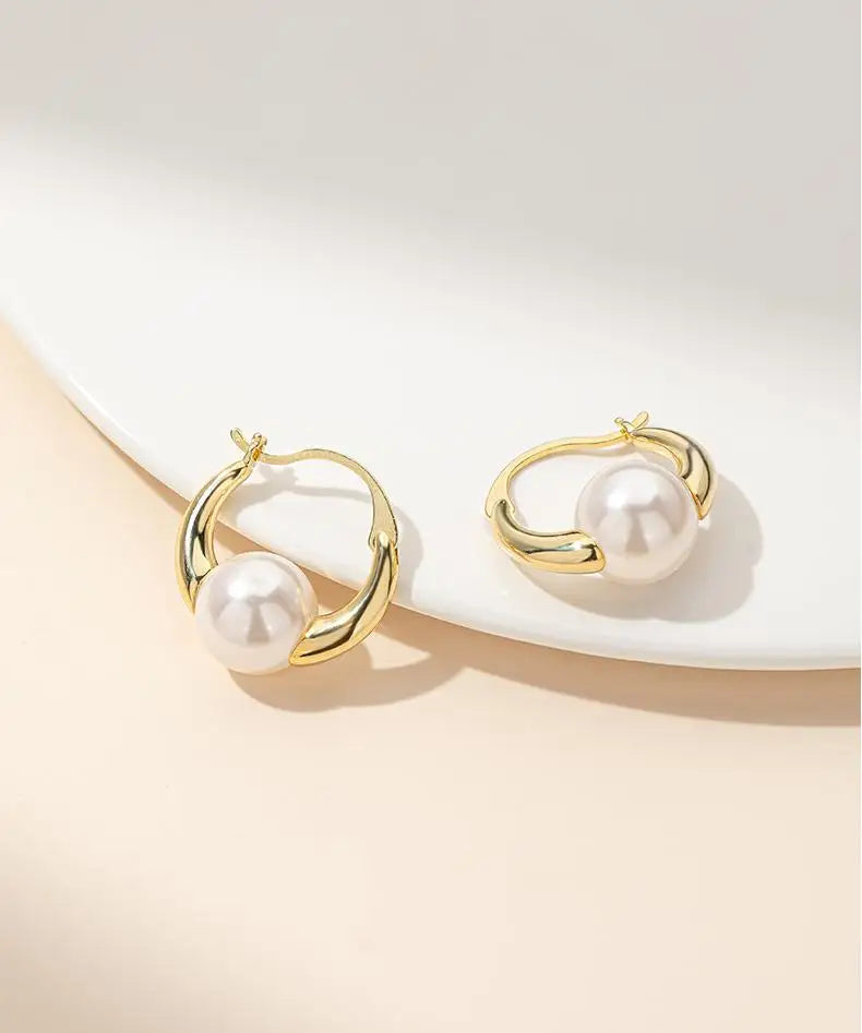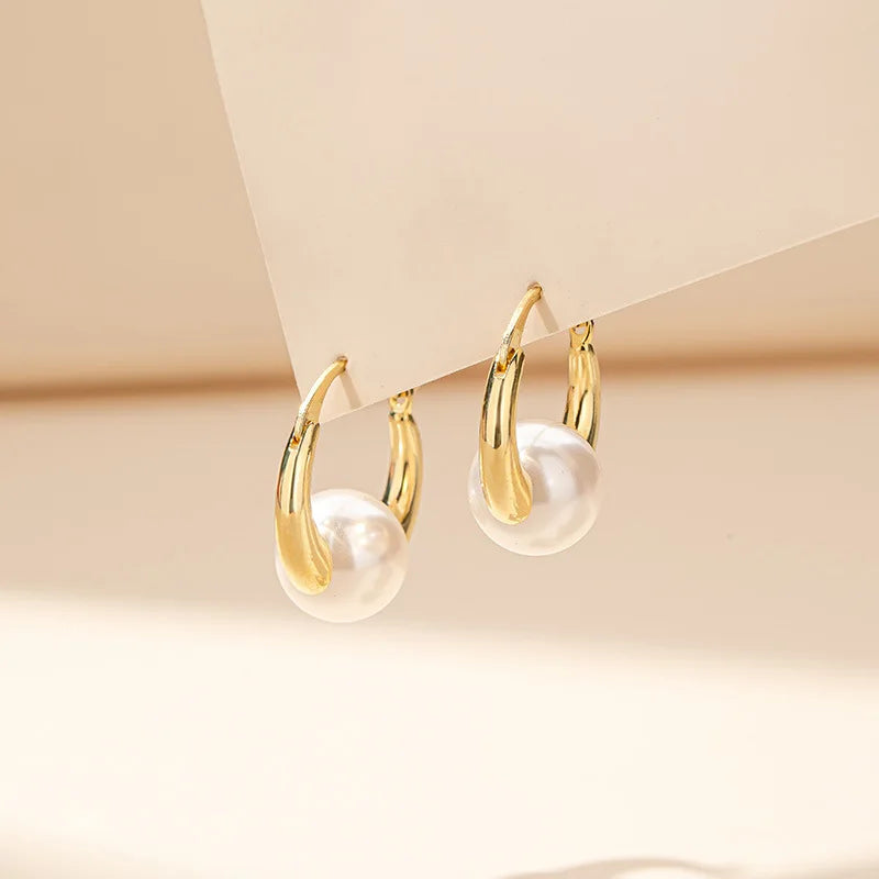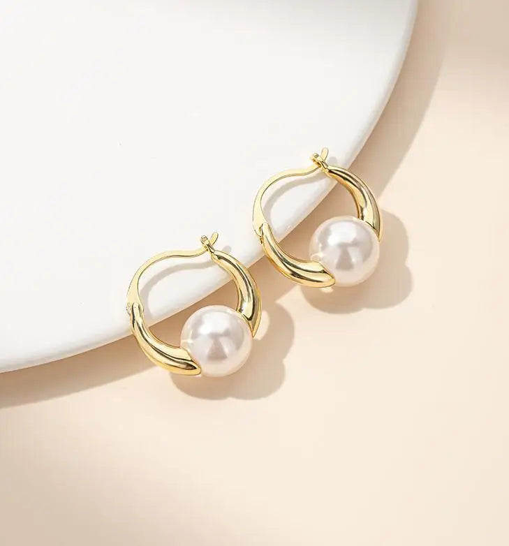 Fashionable Exquisite Artificial Pearl Earrings Elegant Imitation Pearl Hoop Earrings For Women