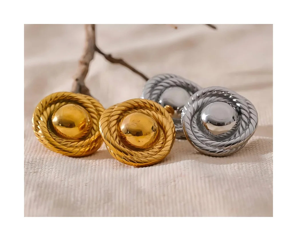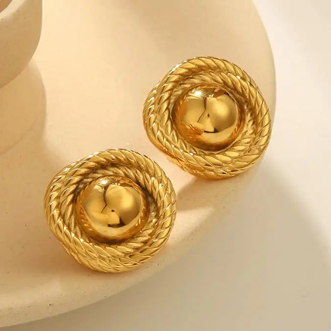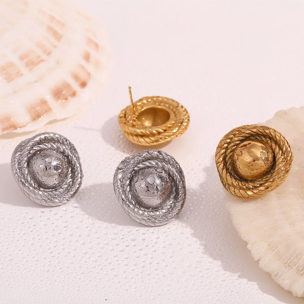 High Quality Chunky Gold Round Rope Twist Disc Earrings Large Statement Button Geometric Earrings for Women