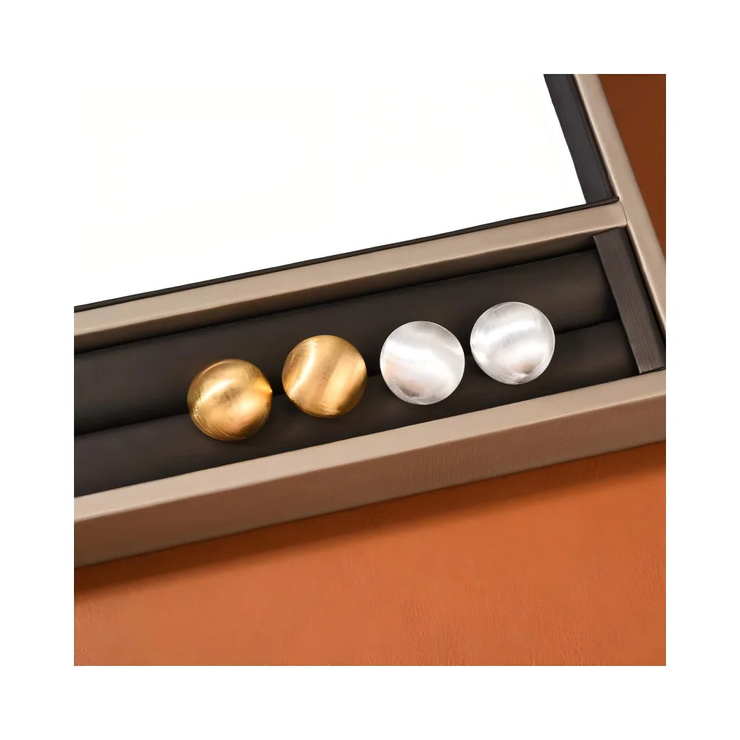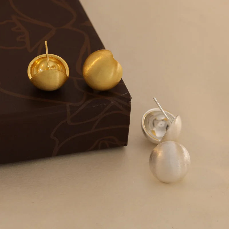 Fashion Personality Brushed Hollow Ball Stud Earrings Silver Gold Plated Disc Earrings for Women Gift