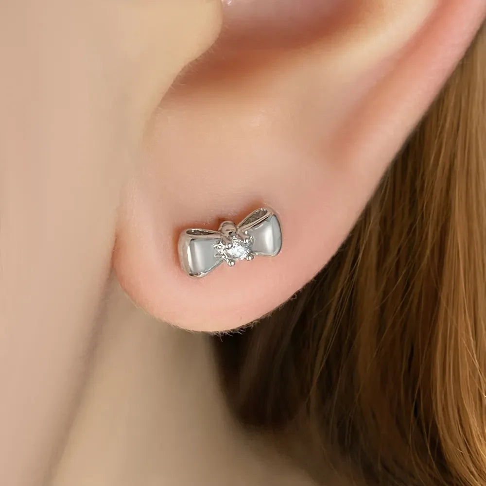 Minimalist Copper Bow Knot Zircon Stud Earrings Hypoallergenic Lightweight Jewelry for Women Perfect Everyday Wear