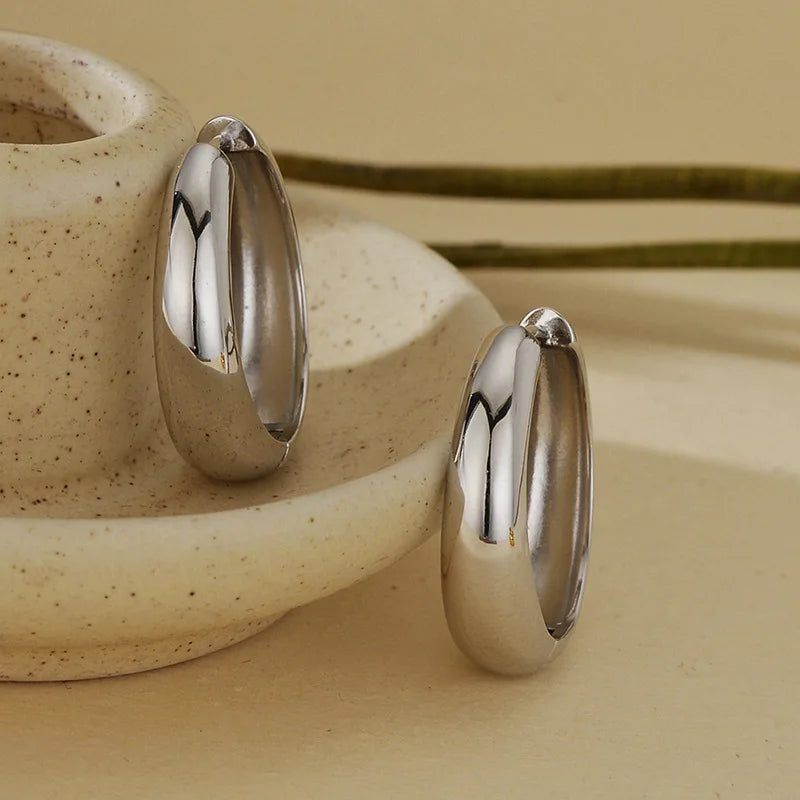 Fashion Glossy Hoop S925 Sterling Silver Earring Buckles Minimalist Plain Hoop Earrings Jewellery for Women