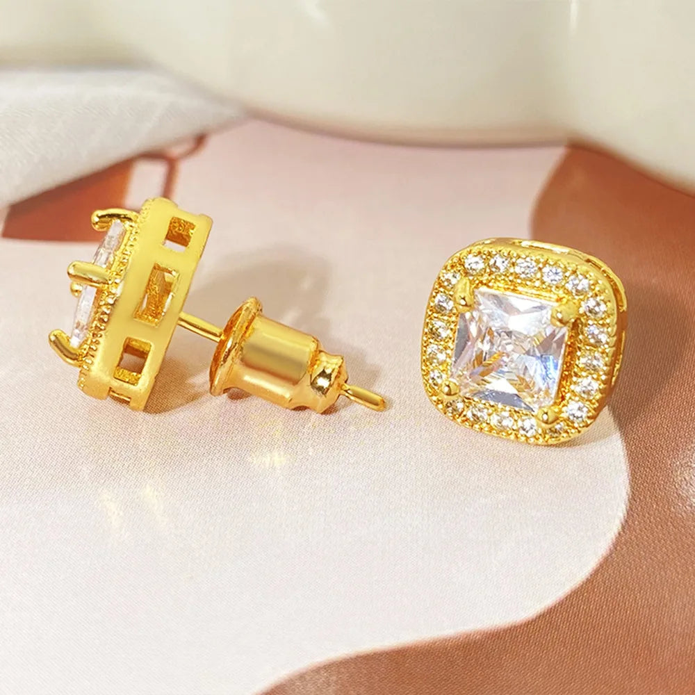Trending Products 2025 New Arrivals Women's Vintage Gold Plated Button Square Shape Earrings Fashion Hypoallergenic Jewelry