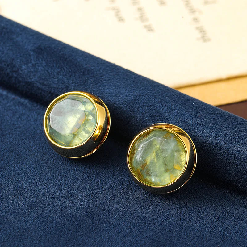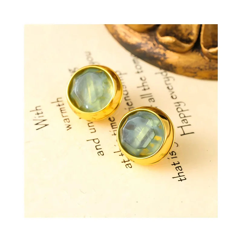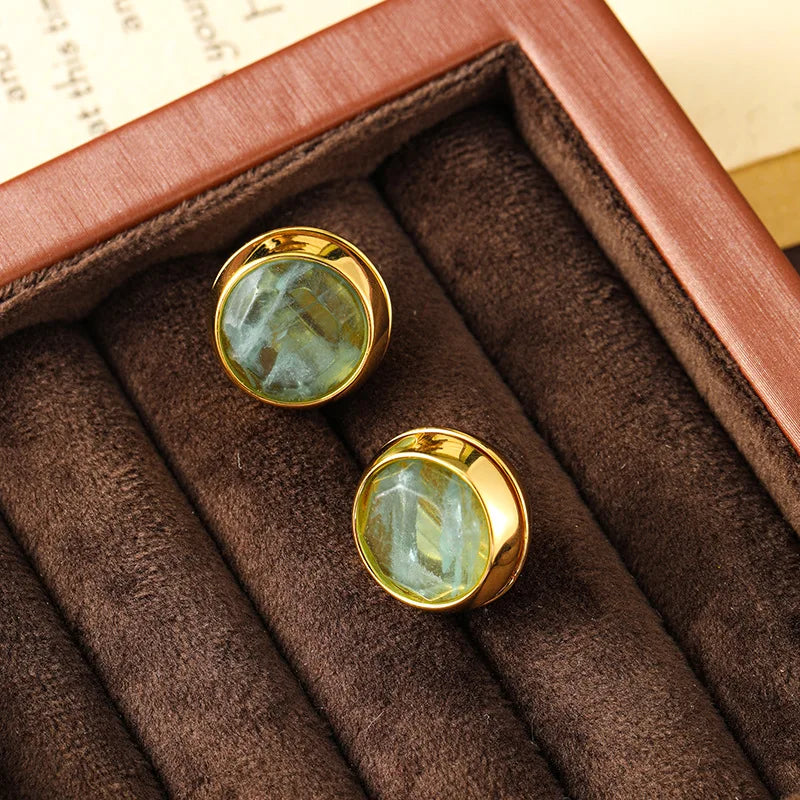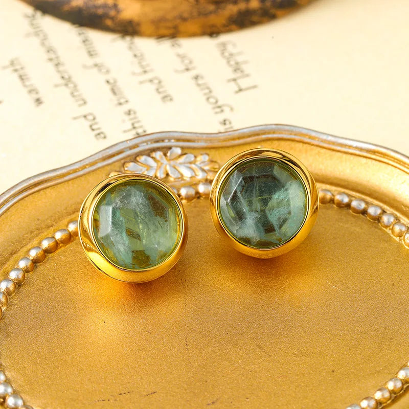 Dainty Natural Green Stone Earrings Copper18k Gold Plated Earrings with Stone for Women Gift