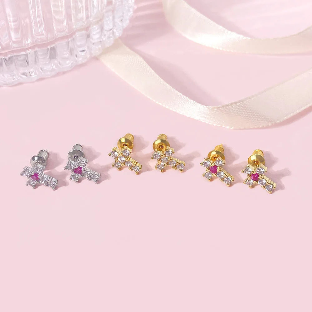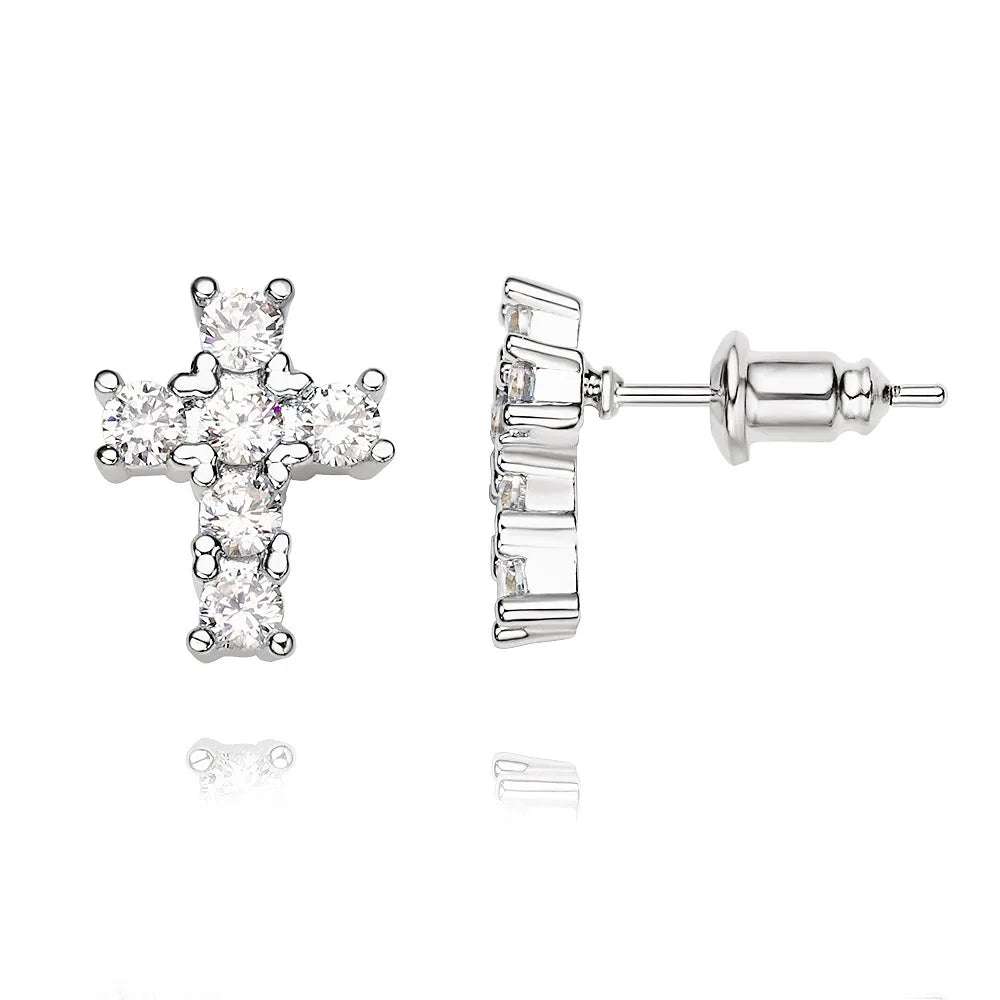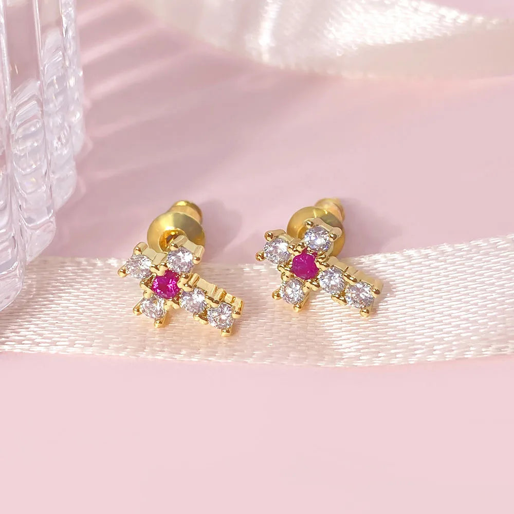 Fashion Jewelry Gold Plated Earrings for Women Minimalist Cubic Zirconia Cross Stud Earrings Sets
