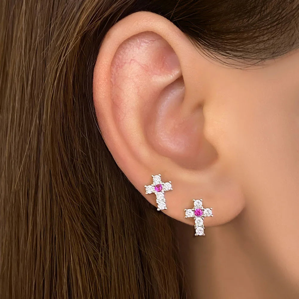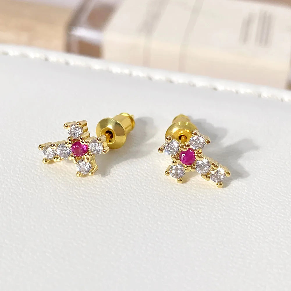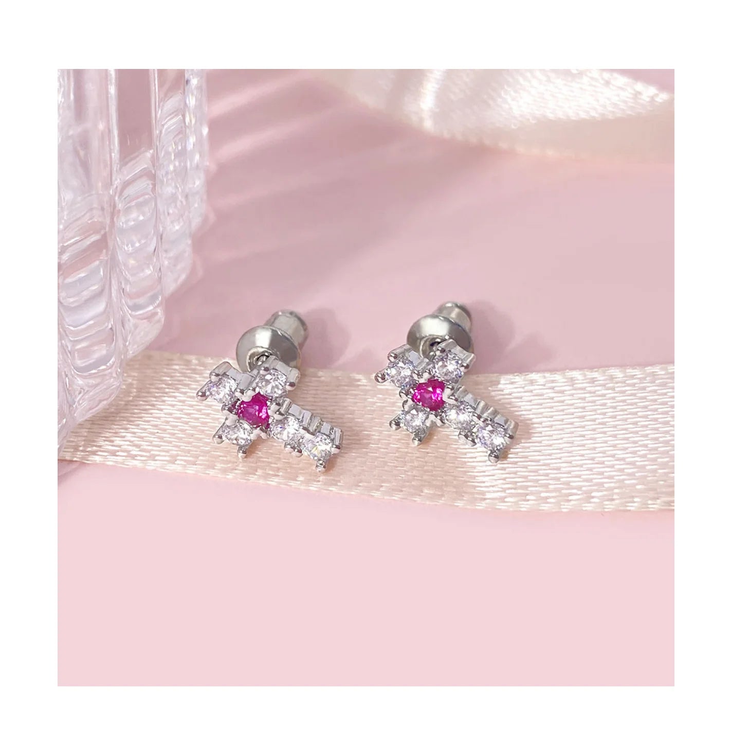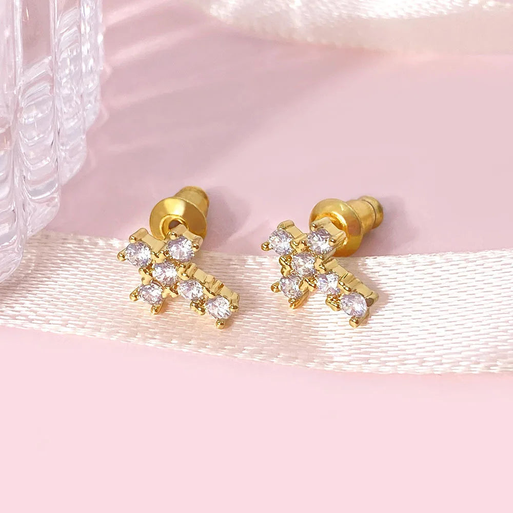 Delicate Small Cross Stud Earrings Made of Embellished with Cz Simple Design Fashion Jewelry Wholesale Preferred