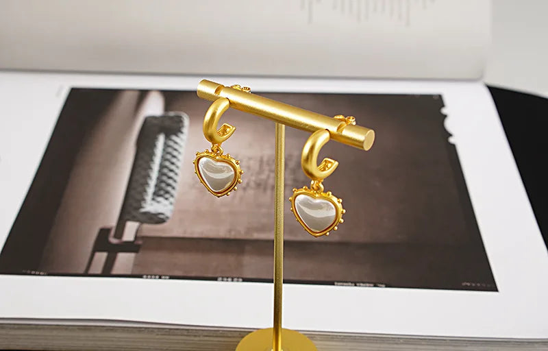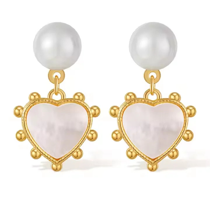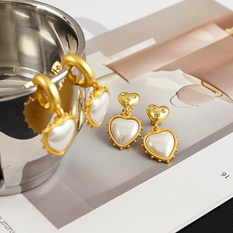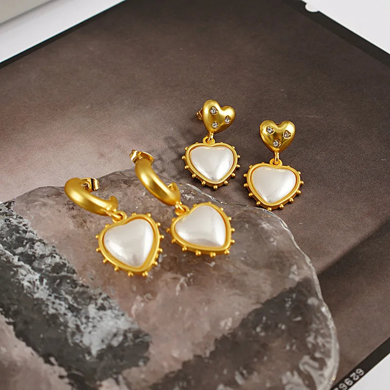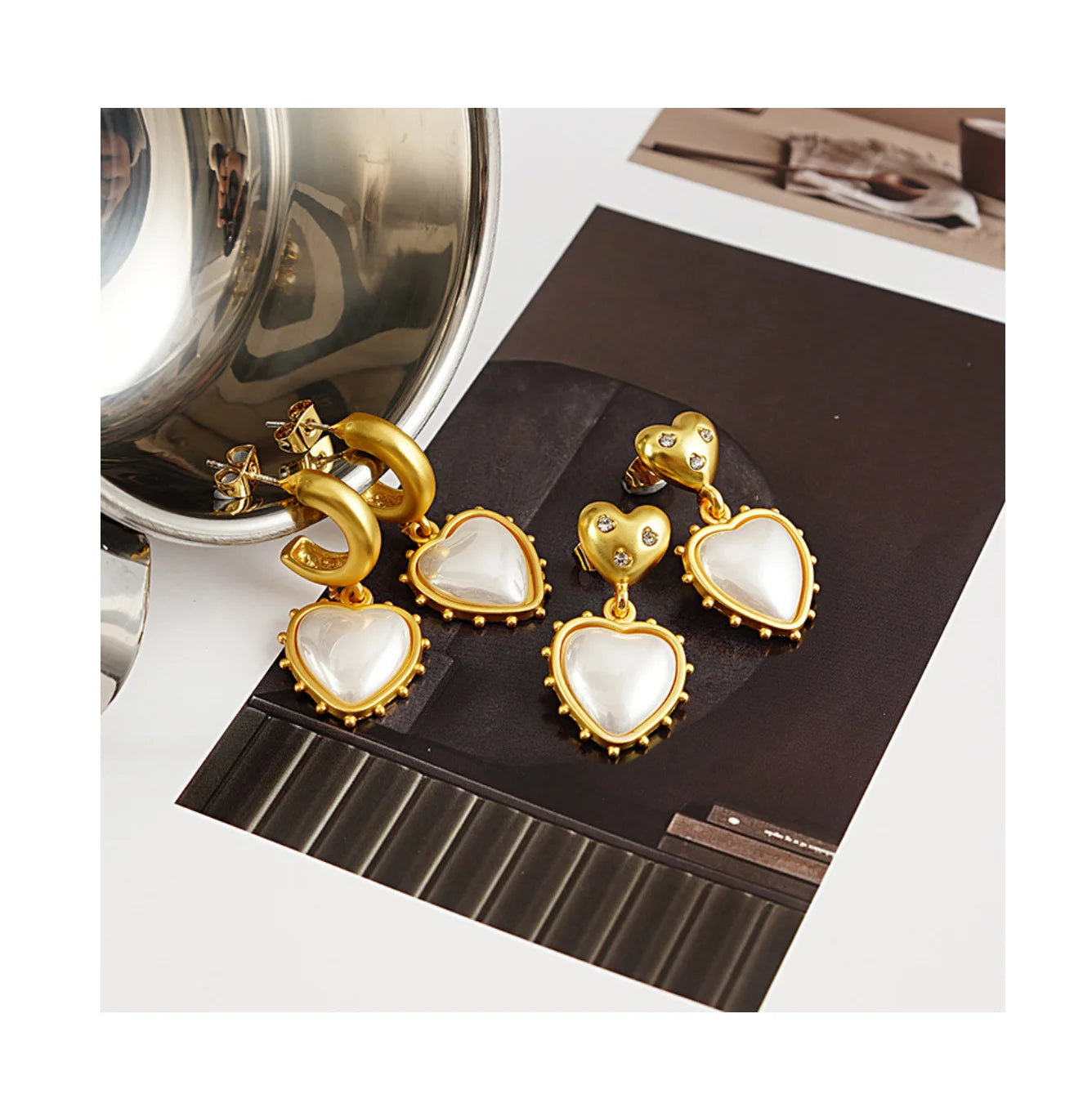 Fashion Pearl Heart Ruffle Drop Earrings Vintage Stainless Steel Heart Shaped Baroque Pearl Hoop Earrings for Women