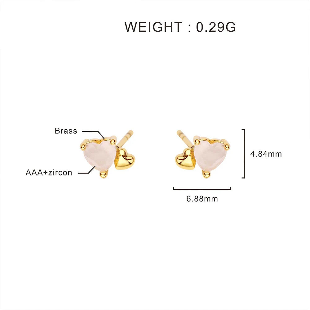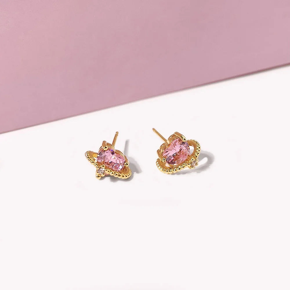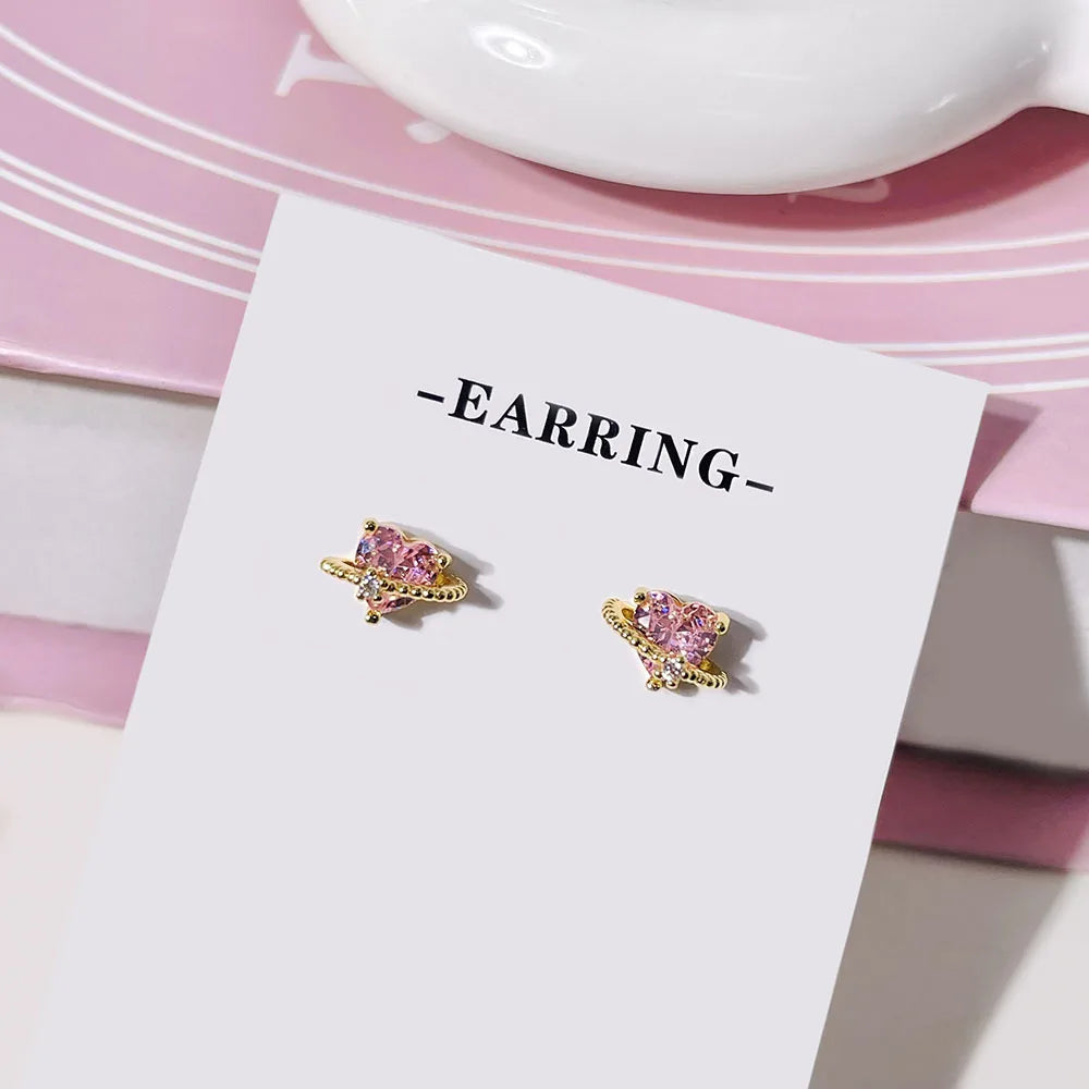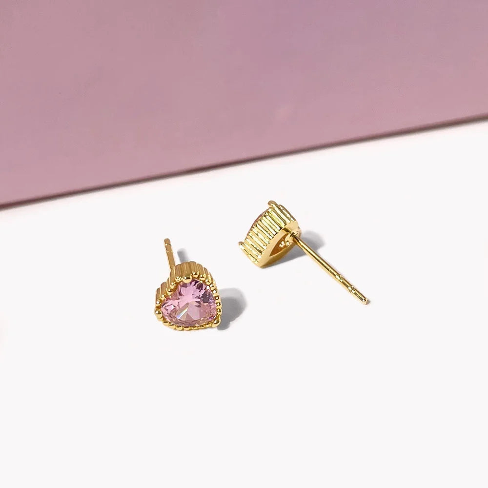 Fashionable Heart Shaped Stud Earrings Inlaid With Pink Cz Gold Plated Suitable for Women's Daily Wear
