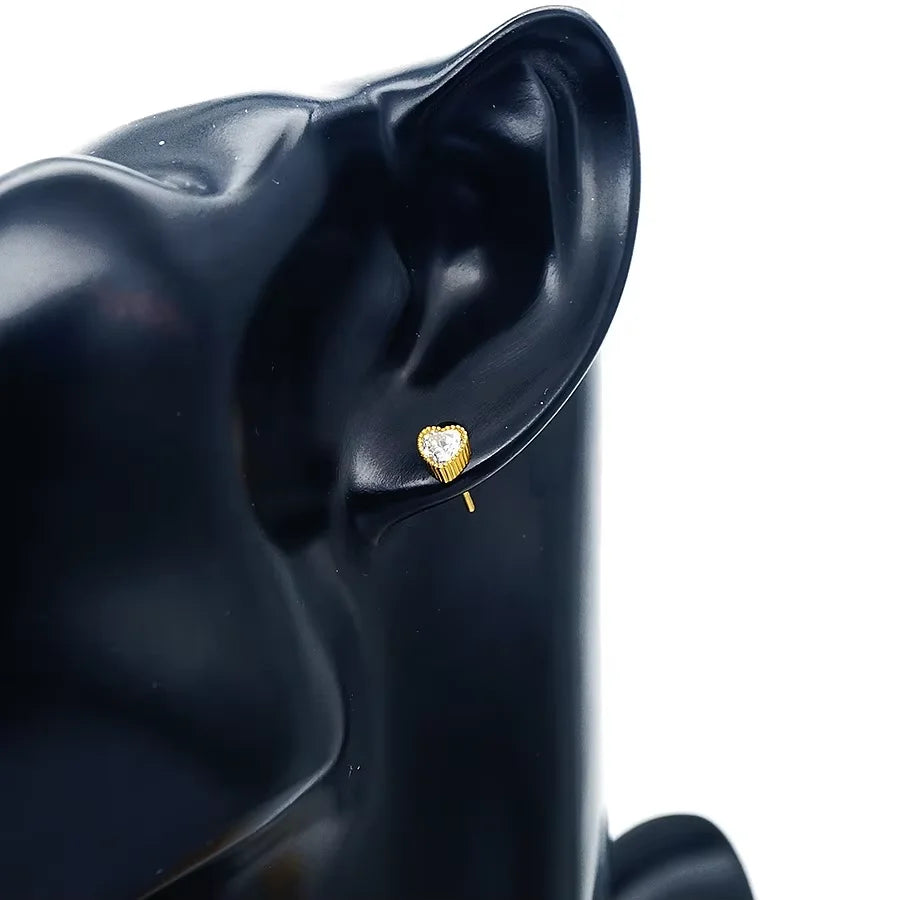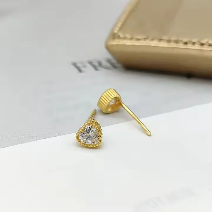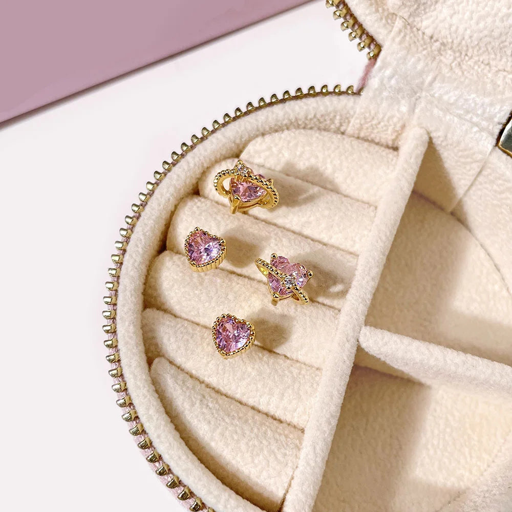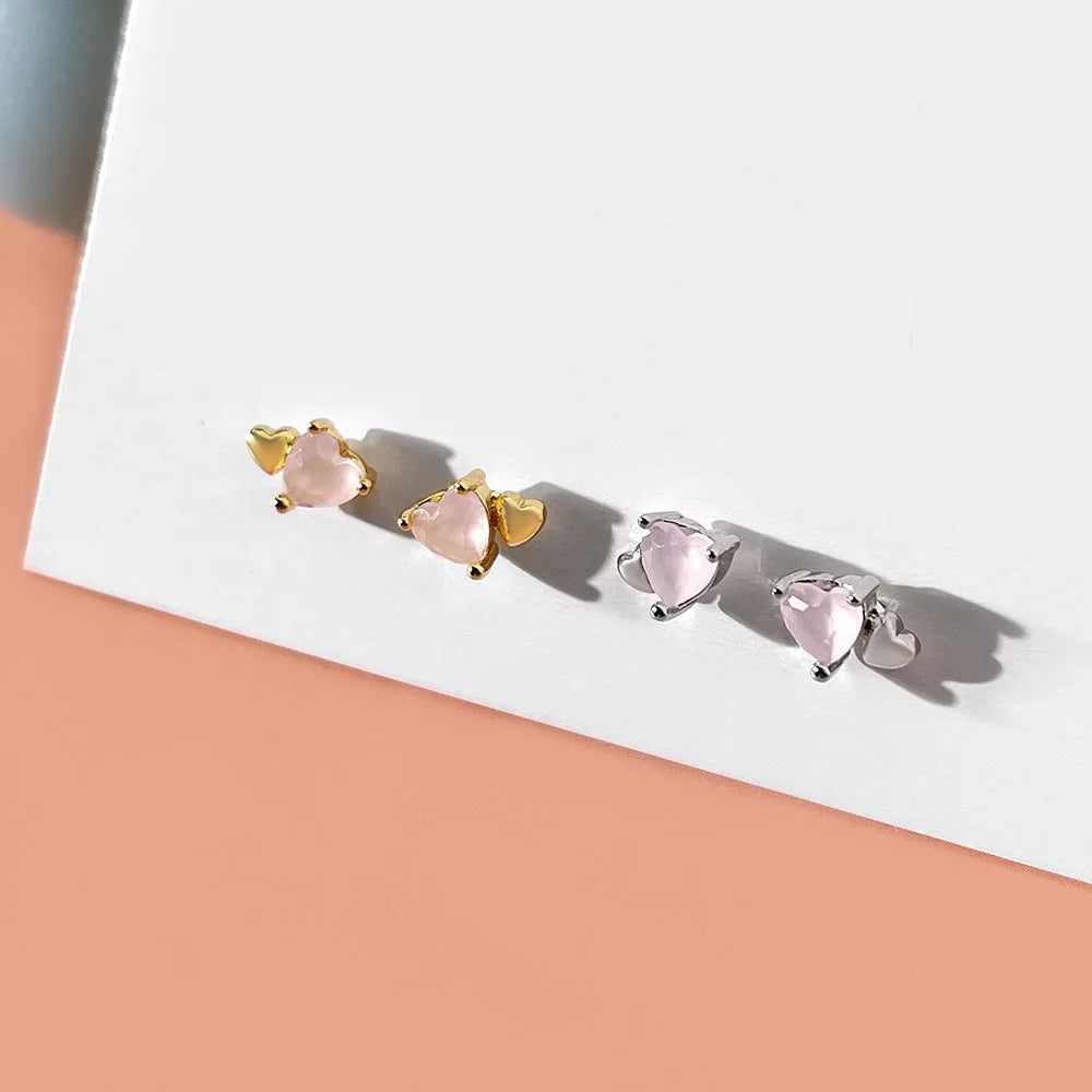 Fashionable Heart Shaped Stud Earrings Inlaid With Pink Cz Gold Plated Suitable for Women's Daily Wear