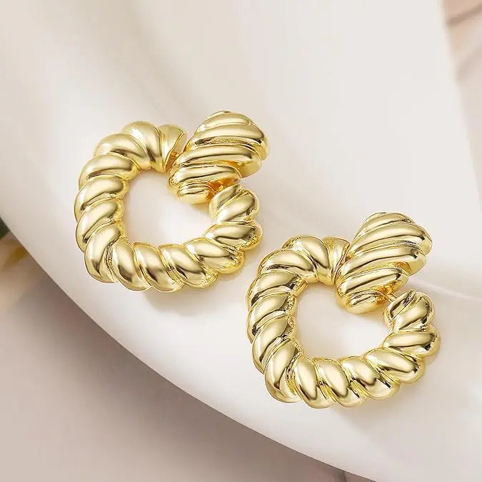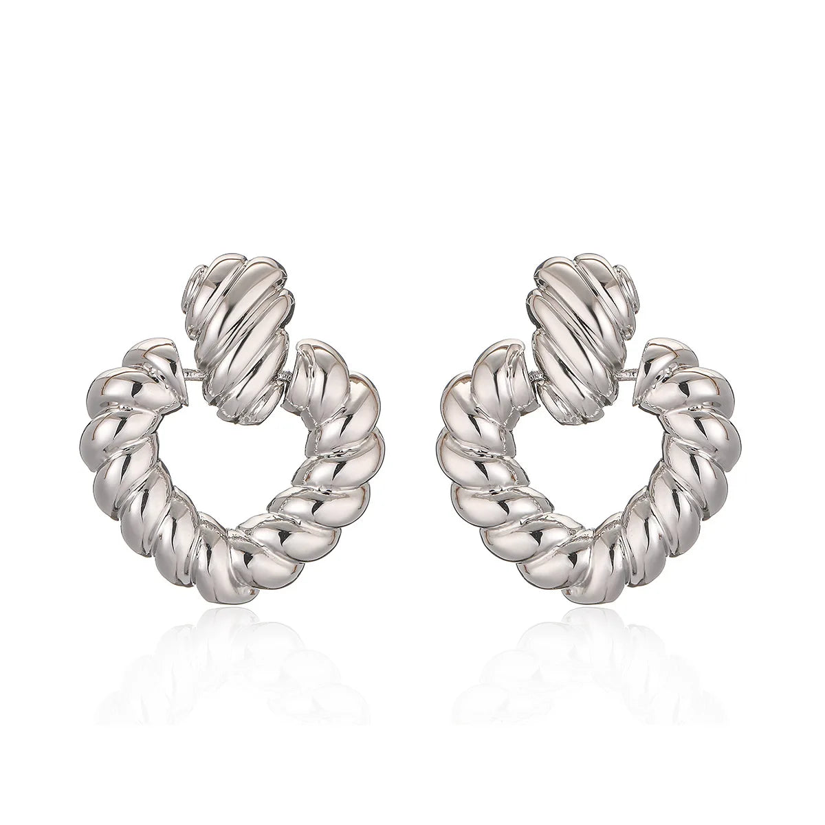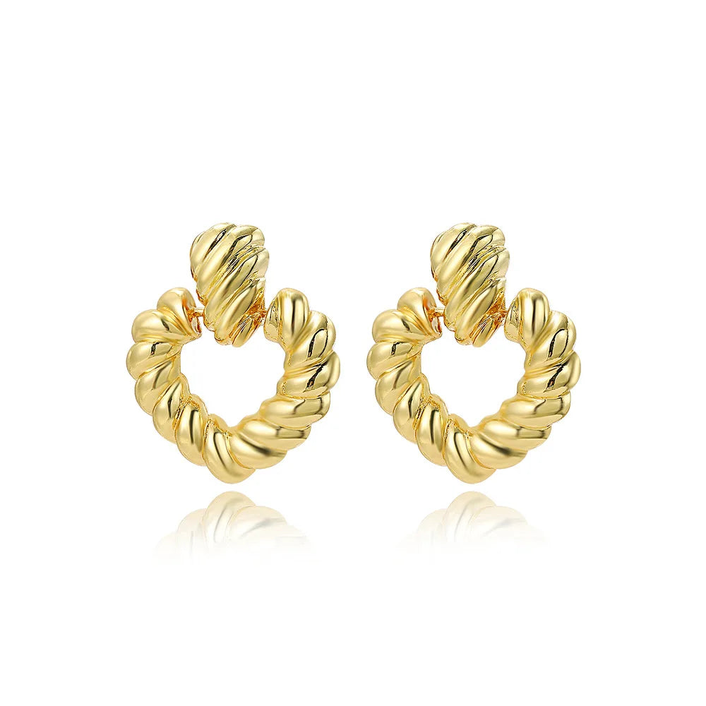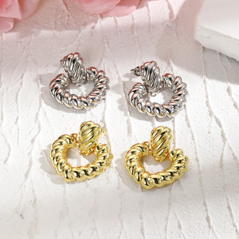 High Quality Gold Door Knocker Statement Earrings Geometric Circle Twisted Earrings Large Heart Drop Dangle Earrings for Women
