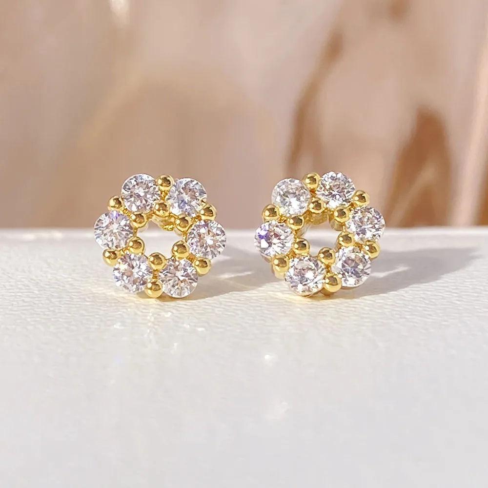 Trendy Sterling Cubic Zirconia Gold Plated Circle Earrings Fashionable Jewelry Accessories for Women