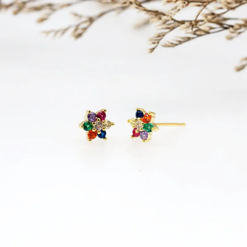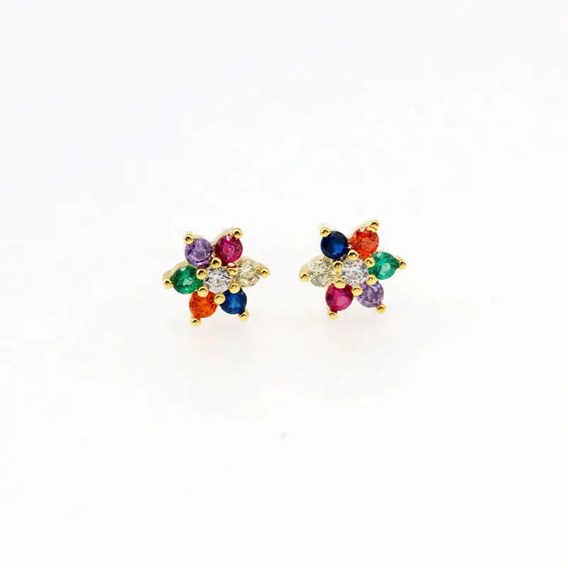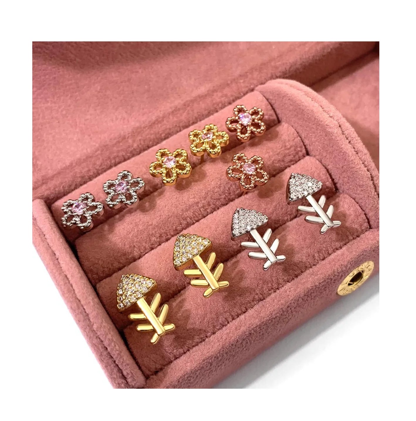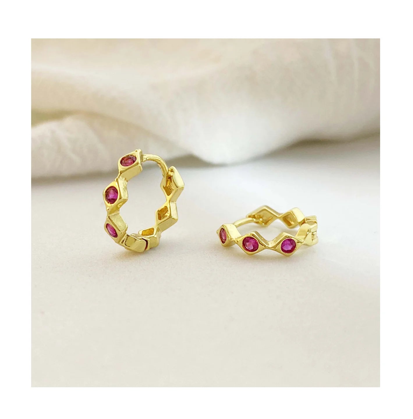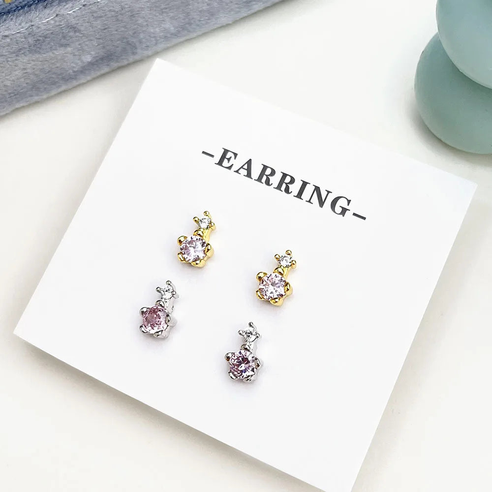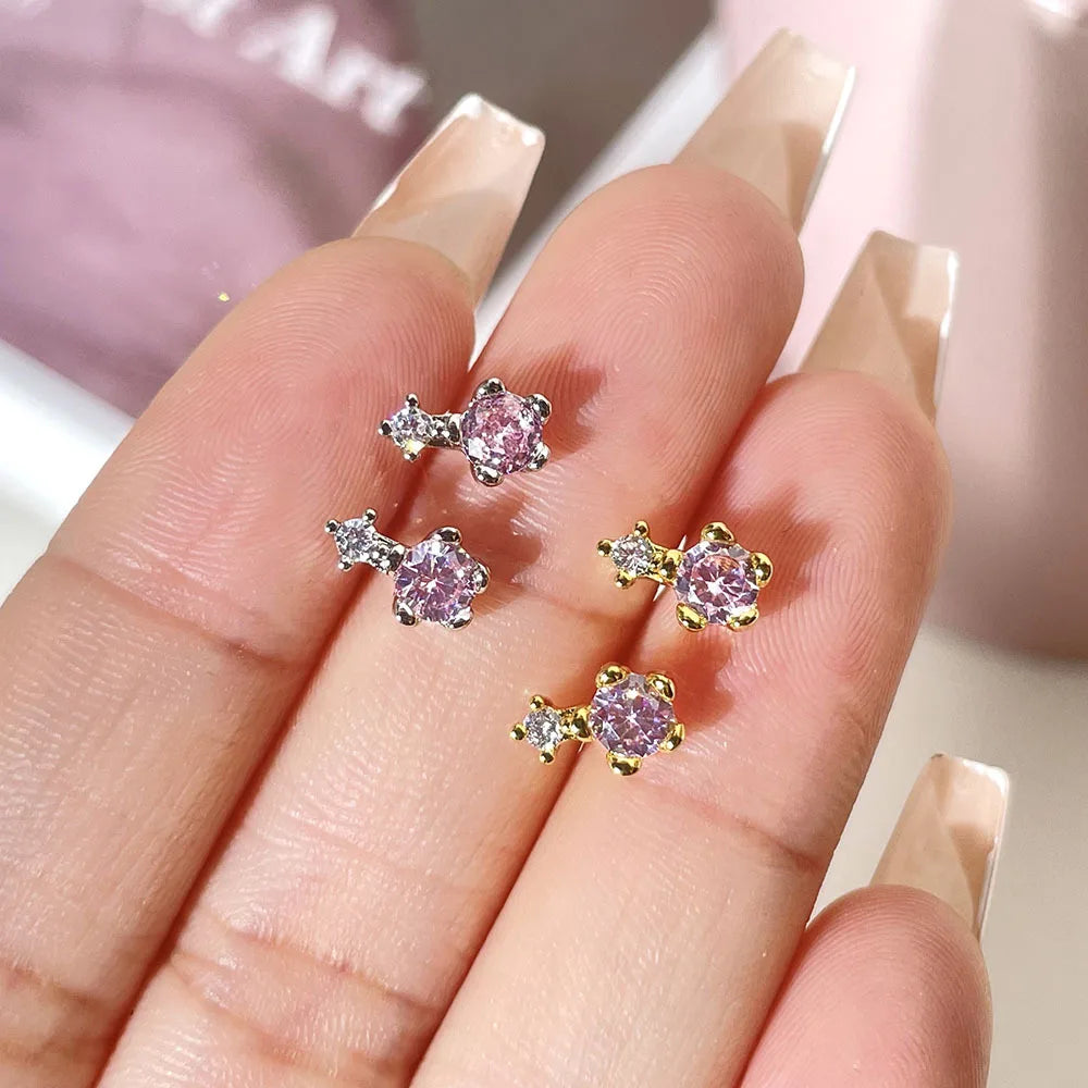 Trendy Colored Gemstone Stud Earrings 14K Gold Plated Pink Cz Perfect for Dates and Daily Wea