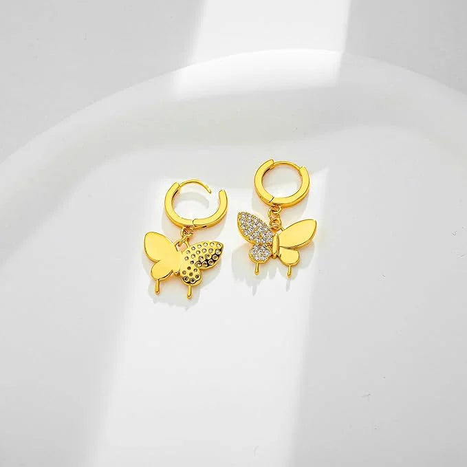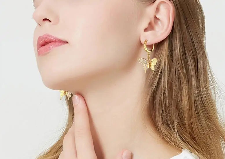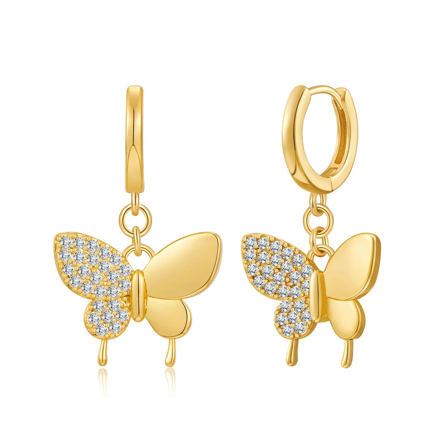 High Quality Cubic Zirconia Stud Earrings Gold Plated Metal Hoop Butterfly Dangle Earrings for Women