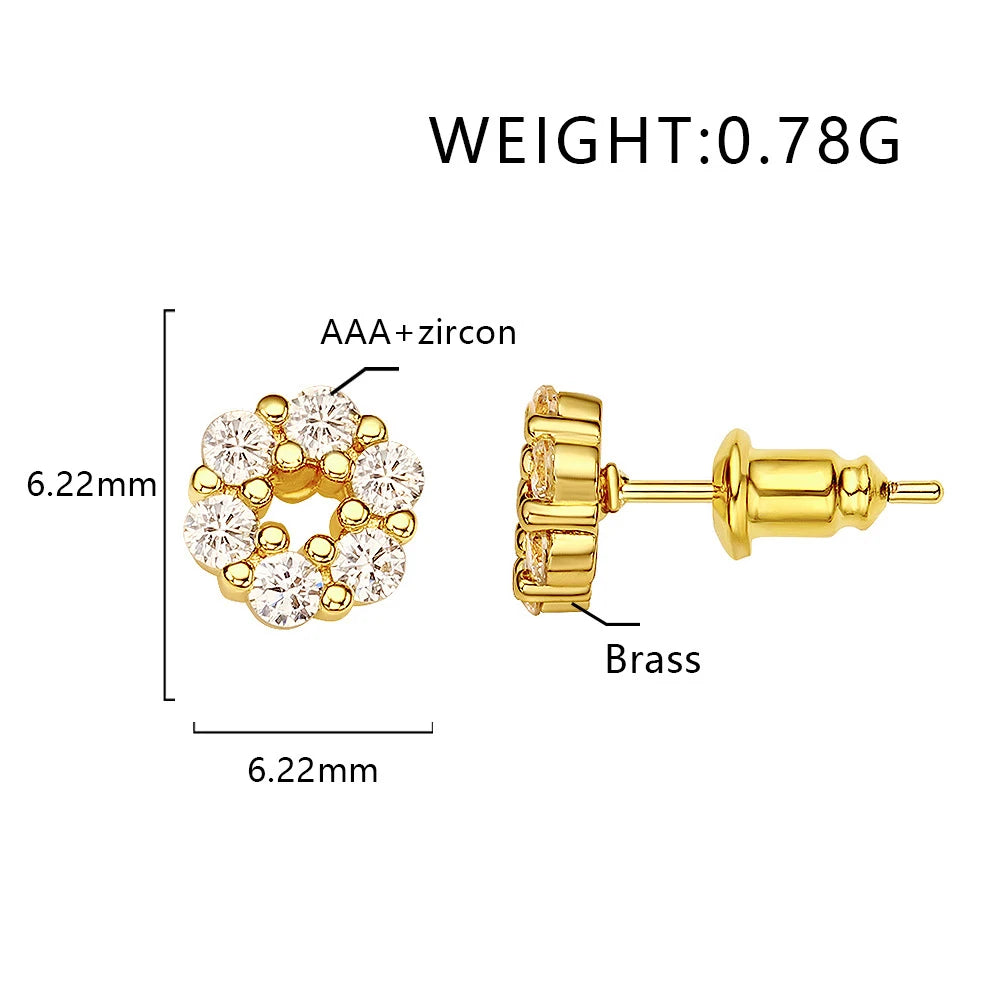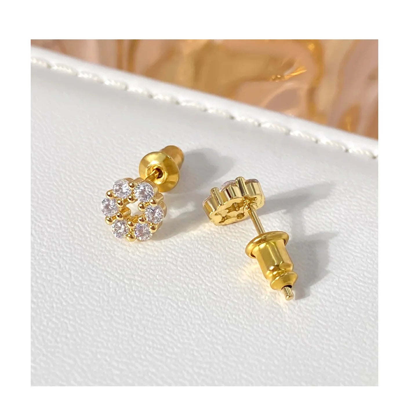 High-quality Stainless Steel Gold Plated Studs Round Zirconia Showcase Individuality Fashionable Women's Accessories