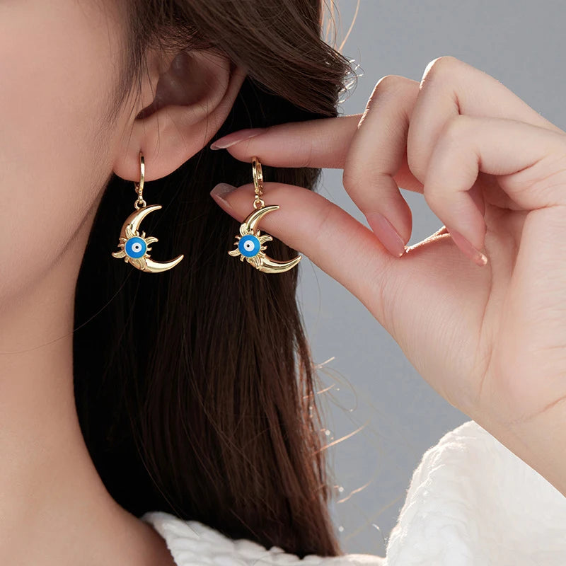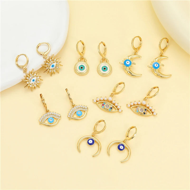Vintage Gold Plated Eye Earrings Set Fashion Stainless Steel Dangle Drop Earrings for Women Jewelry
