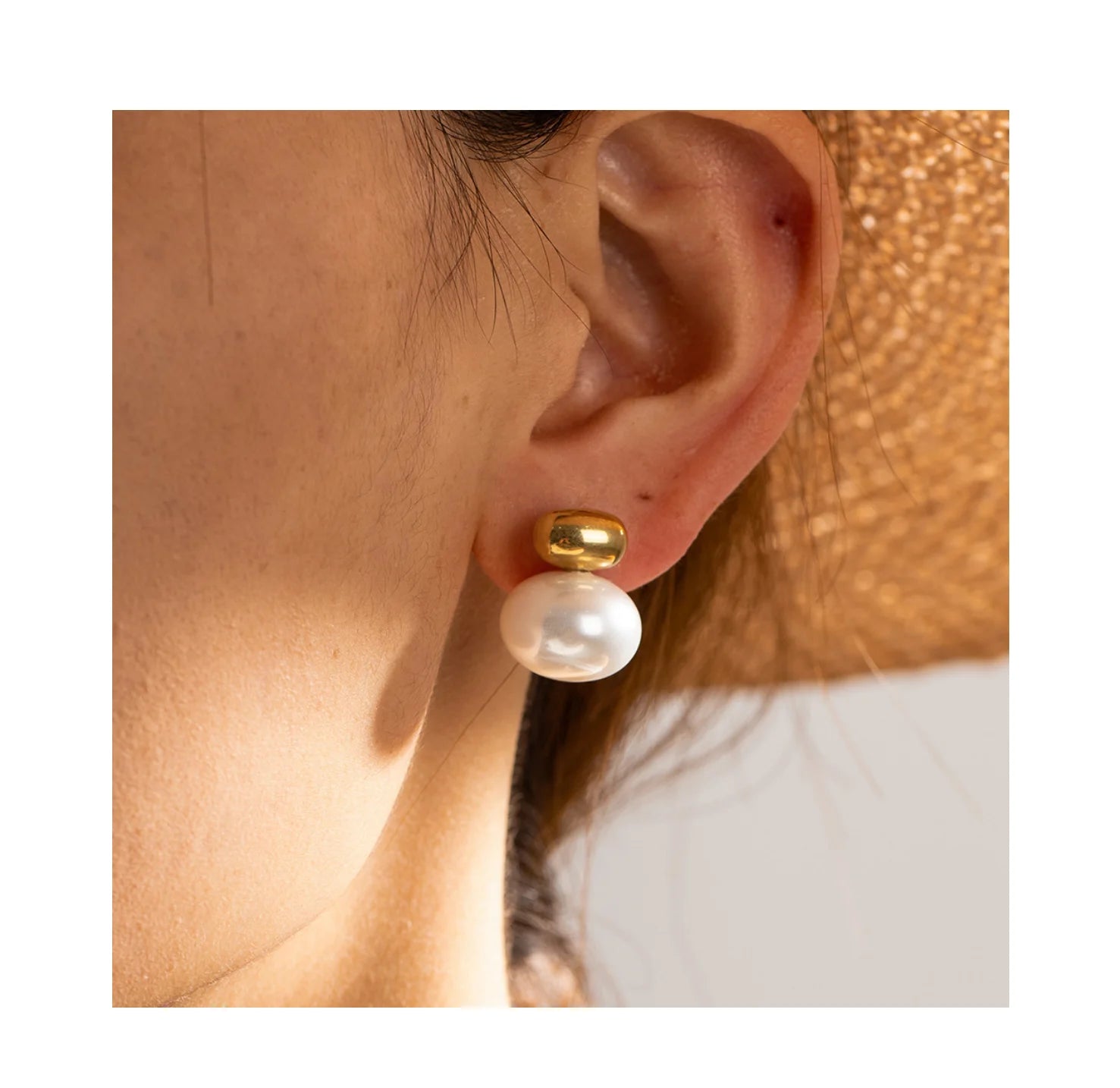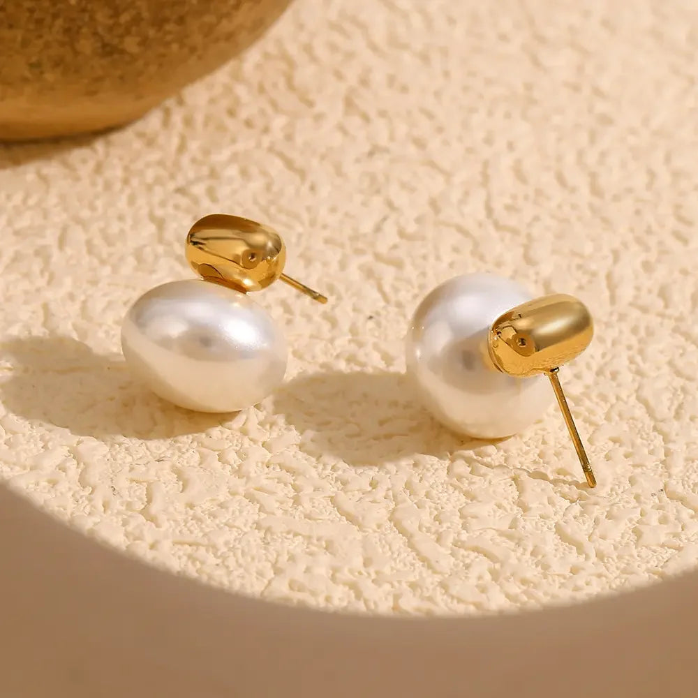 Trendy Stainless Steel Pearl Stud Earrings Classic18K Gold Plated Ear Studs Earring Fashion Women's Jewelry