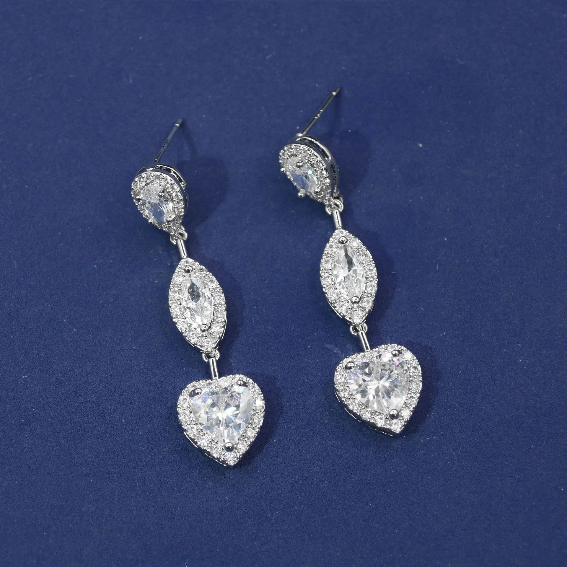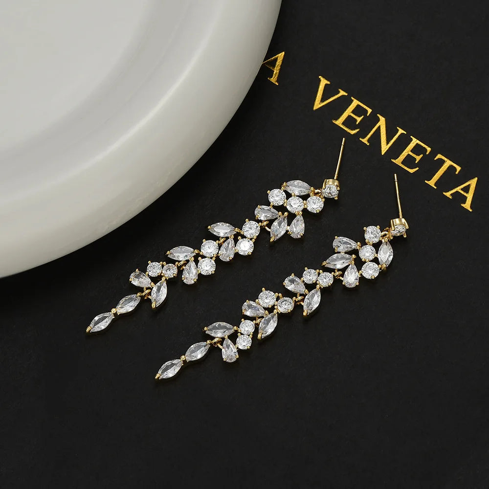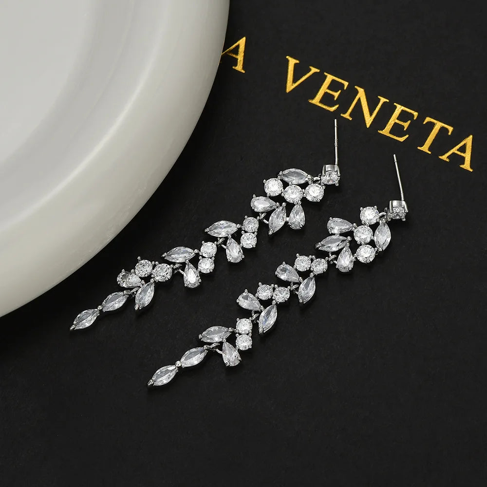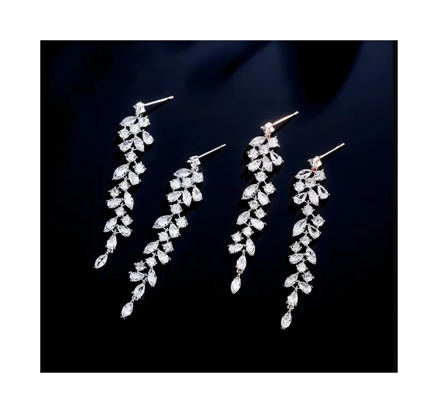 Fashion Bridesmaid Bridal Cubic Zircon Long Tassel Leaf Drop Earrings Fine Jewelry Earrings for Wedding Party Prom