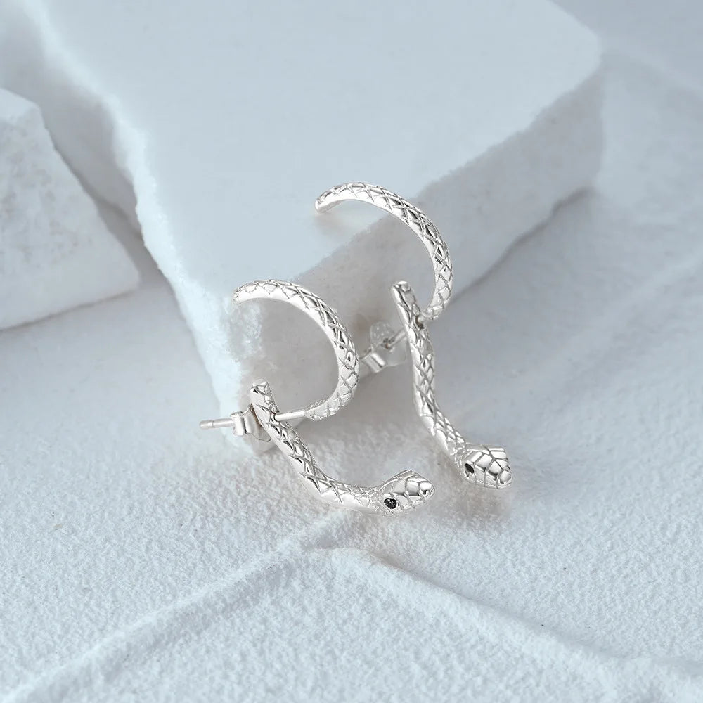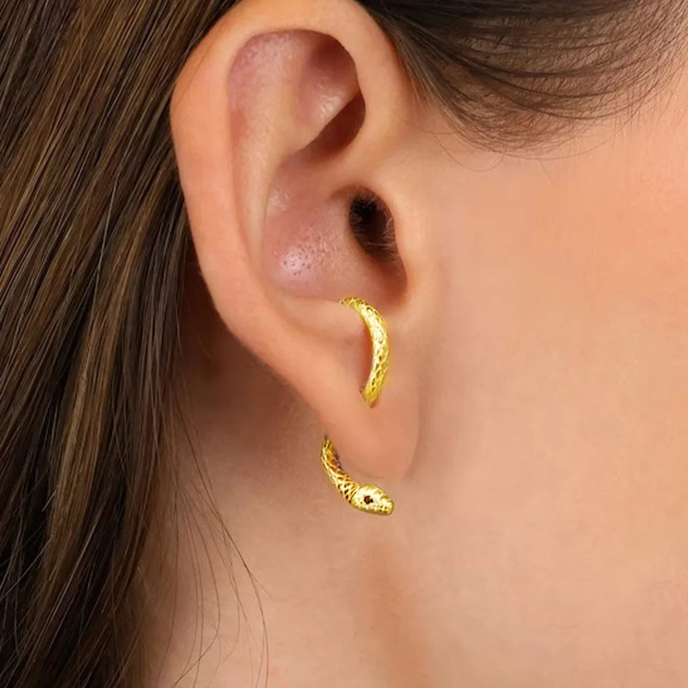Fashion Edgy Divided 18k Gold Plated 925 Silver Snake Earrings for Women Punk Exaggerated Metal Earrings Holiday Gift